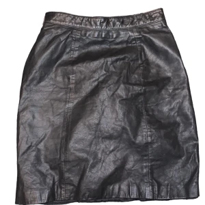 Kort skinnkjol, aldrig använd. Finns ett knäppe där bak vid höften.