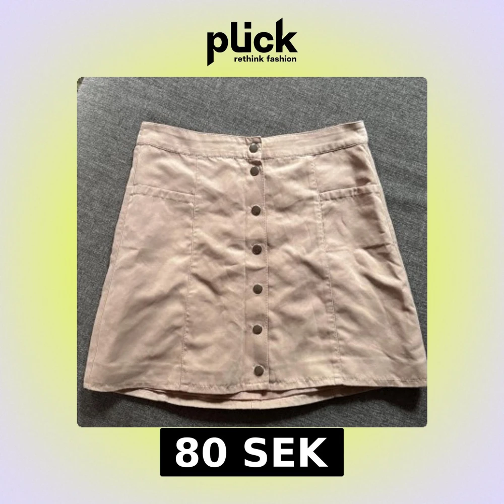 Snygg beige kortkjol från H&M Divided i storlek 38. Kjolen har raka linjer, stora fickor framtill och knappar hela vägen ner. Perfekt för dig som gillar en enkel men trendig look. Materialet känns mjukt och har en lätt struktur.