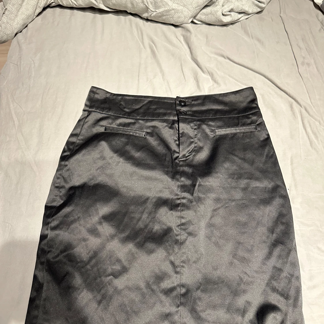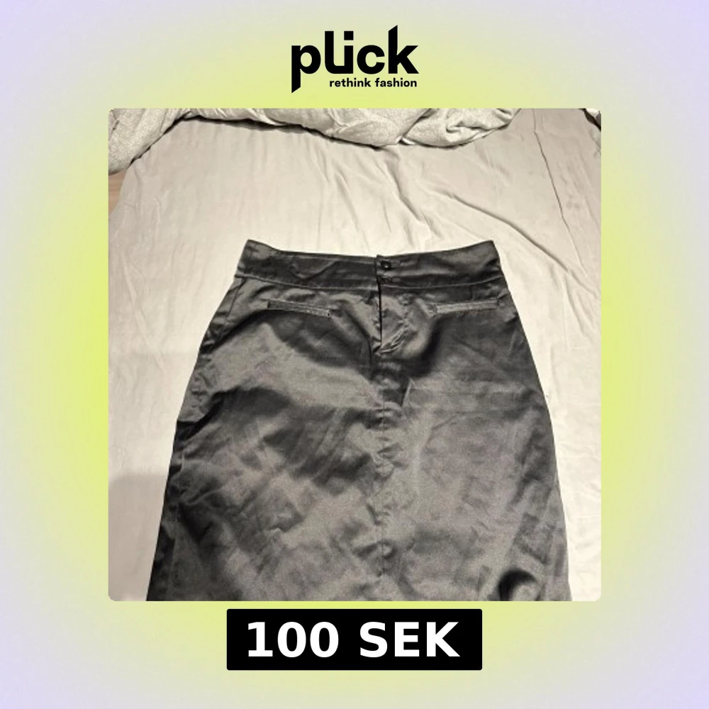 Klassisk svart pennkjol från Paris Kate & I i storlek 38. Kjolen har slits bak, två fuskfickor och stängs med knapp och dragkedja. Snygg och stilren modell i blankt tyg som passar perfekt till en dressad look.