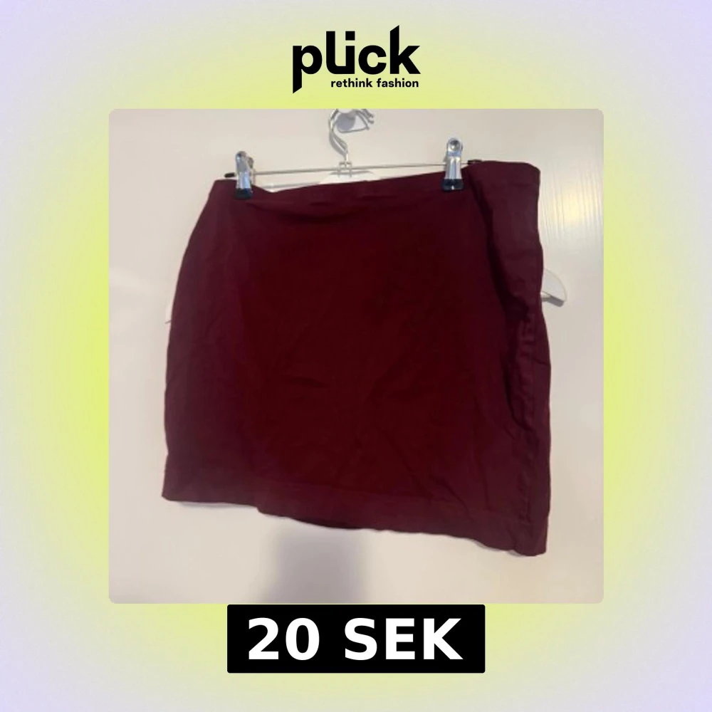 Enkel och stilren vinröd kortkjol i mjukt tyg. Kjolen har en rak passform och är i bra skick.