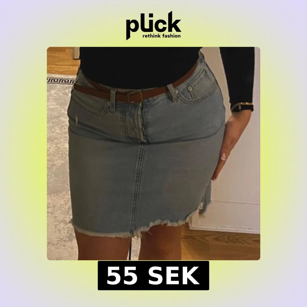 Ljusblå jeanskjol med fransad kant - Säljer denna snygga ljusblåa jeanskjol från Gina Tricot med fransad nederkant och klassiska fickor fram och bak. Kjolen knäpps enadast med knappar och är i strolek 40🌸🌸