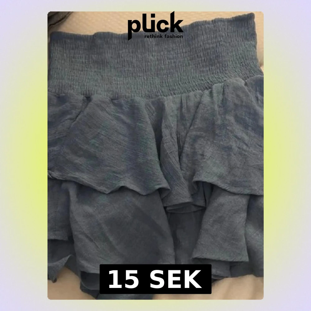 Supersöt blå kortkjol med bred resår i midjan och flera lager volanger. Kjolen har en luftig och lätt känsla, perfekt för varma dagar. Materialet känns mjukt och flowy, vilket ger en avslappnad men ändå stylish vibe.