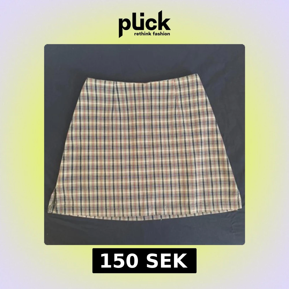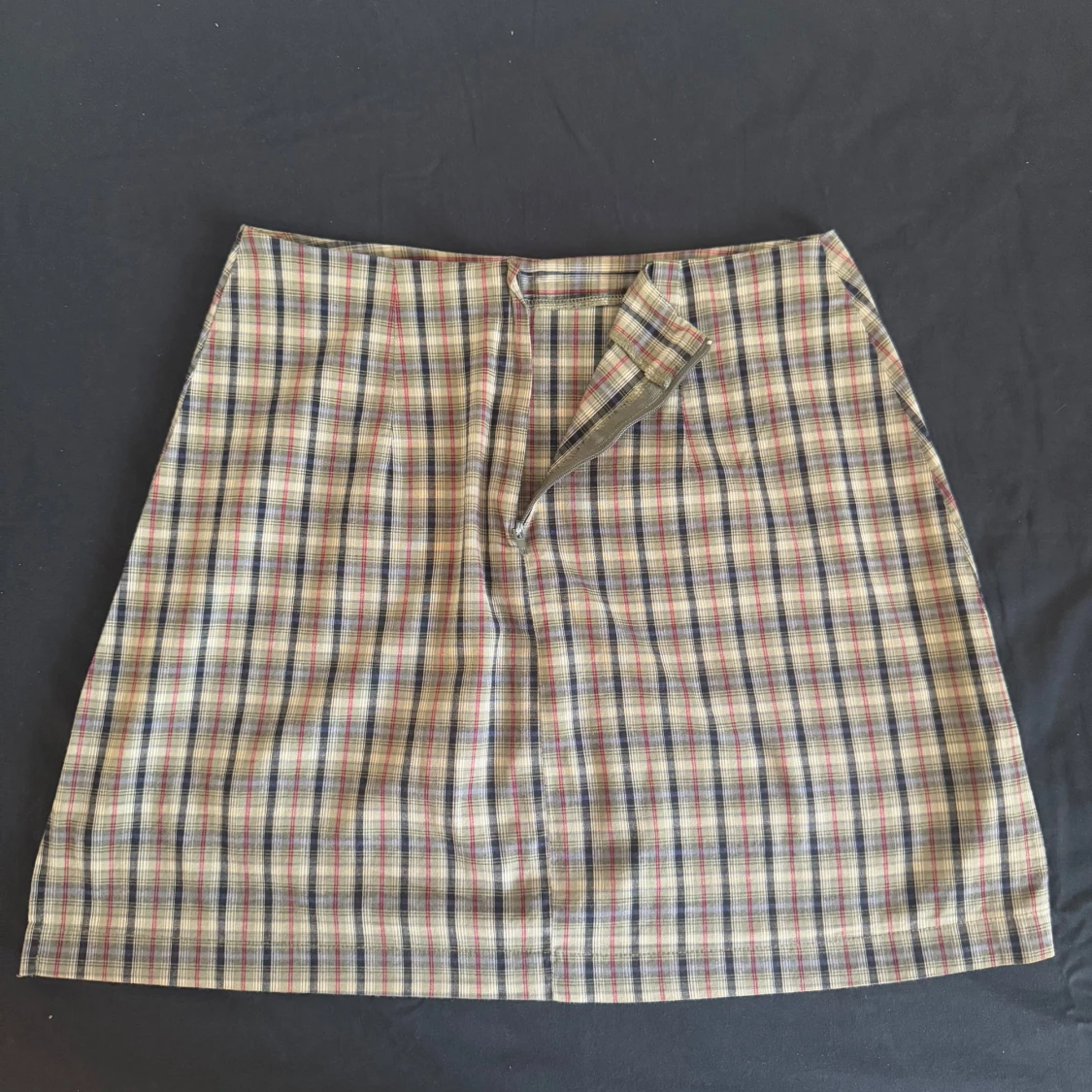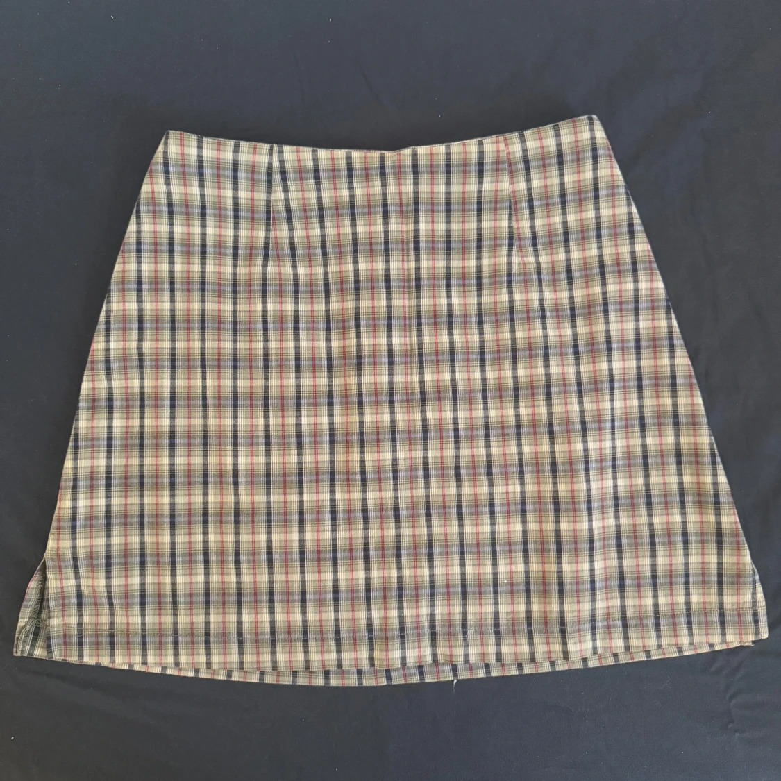 Superfin rutig kortkjol från My Michelle i bomull. Kjolen har dragkedja i sidan och klassiskt A-linjeformat snitt. Färgerna går i beige, blått, rött och svart, vilket ger en tidlös vibe. Perfekt att styla med en enkel topp och sneakers.