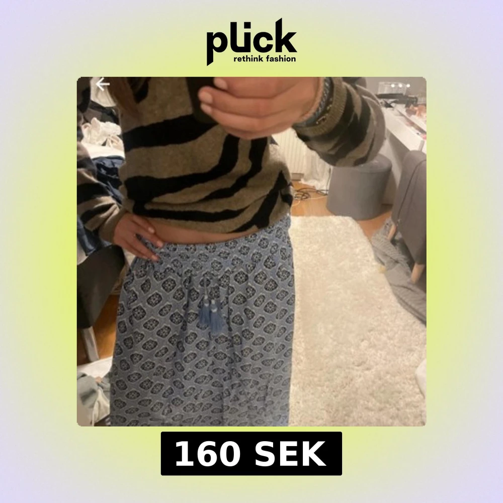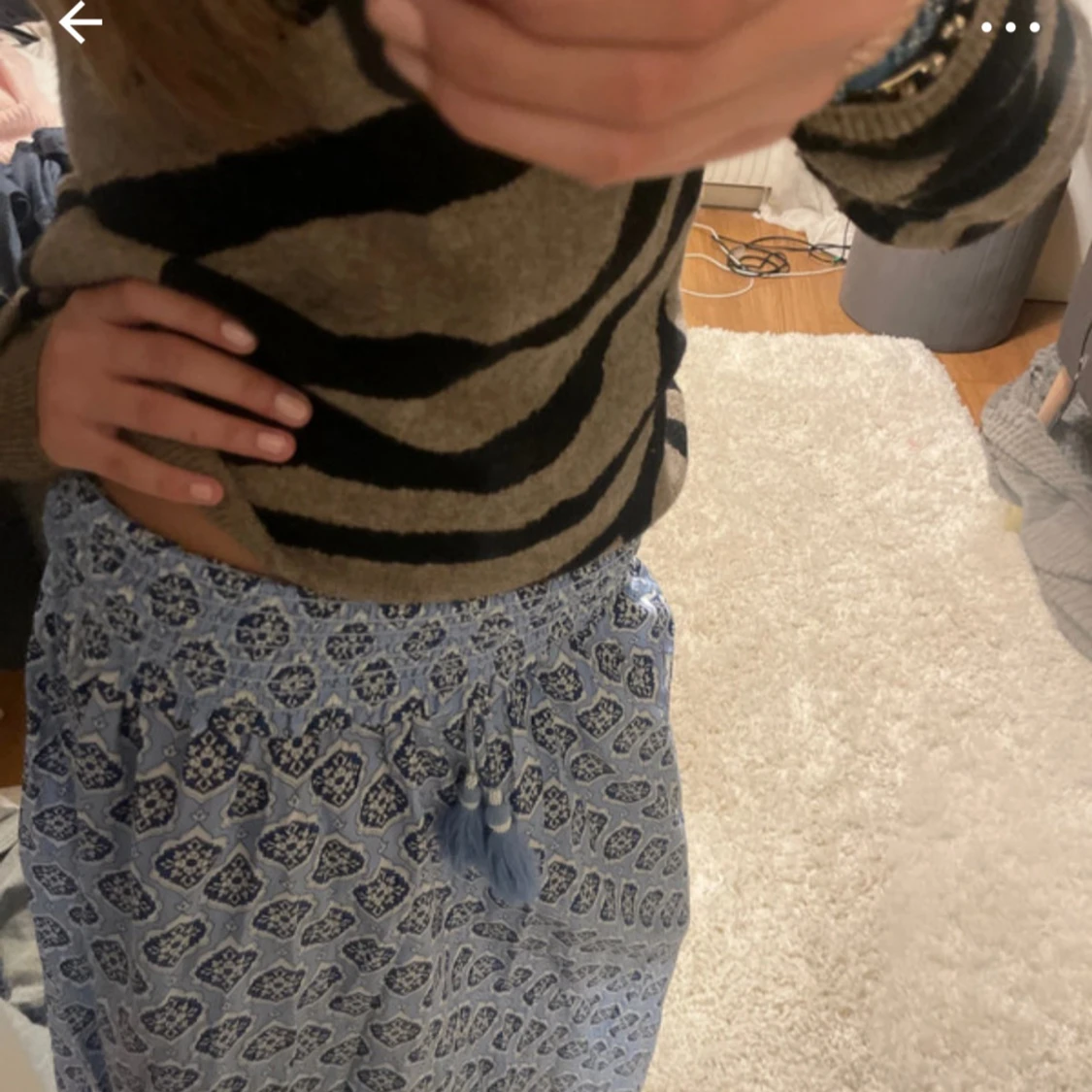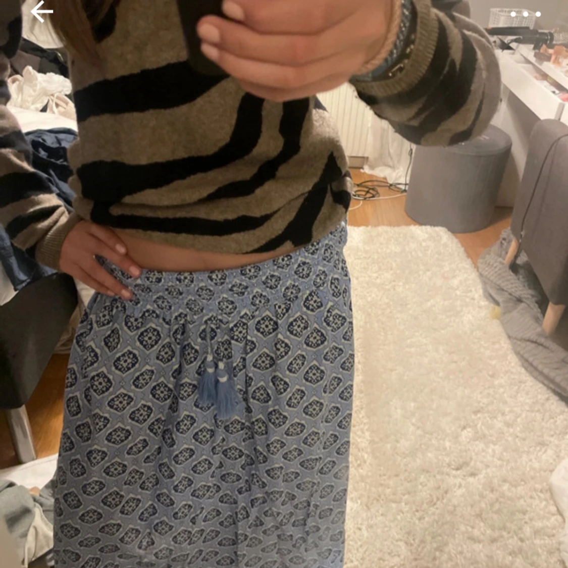 Blå mönstrad långkjol med tofsar