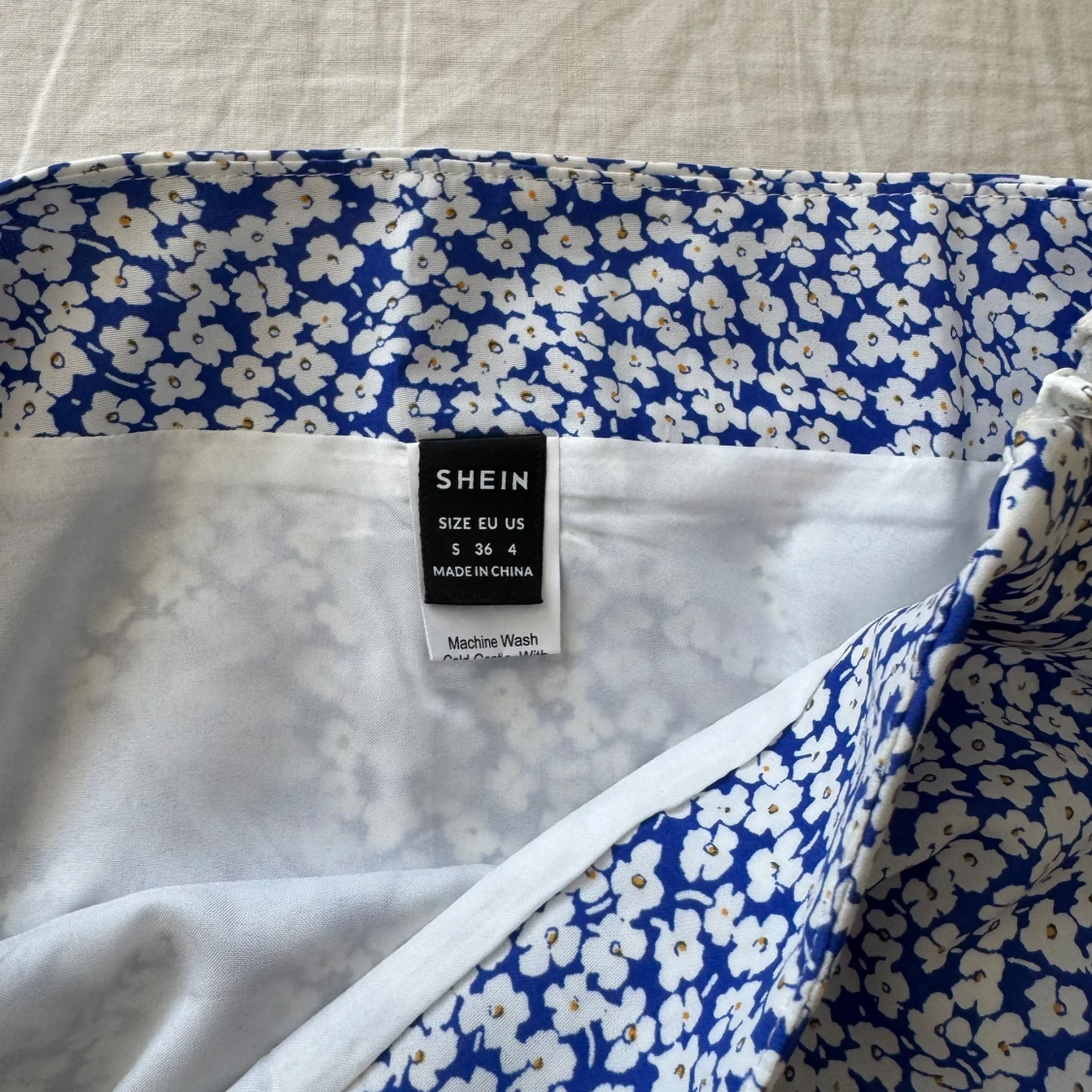 Supersöt långkjol från SHEIN med blå botten och vitt blommönster. Kjolen har en flowy passform och är perfekt för dig som gillar en feminin och somrig stil. Lätt material som känns skönt mot huden.