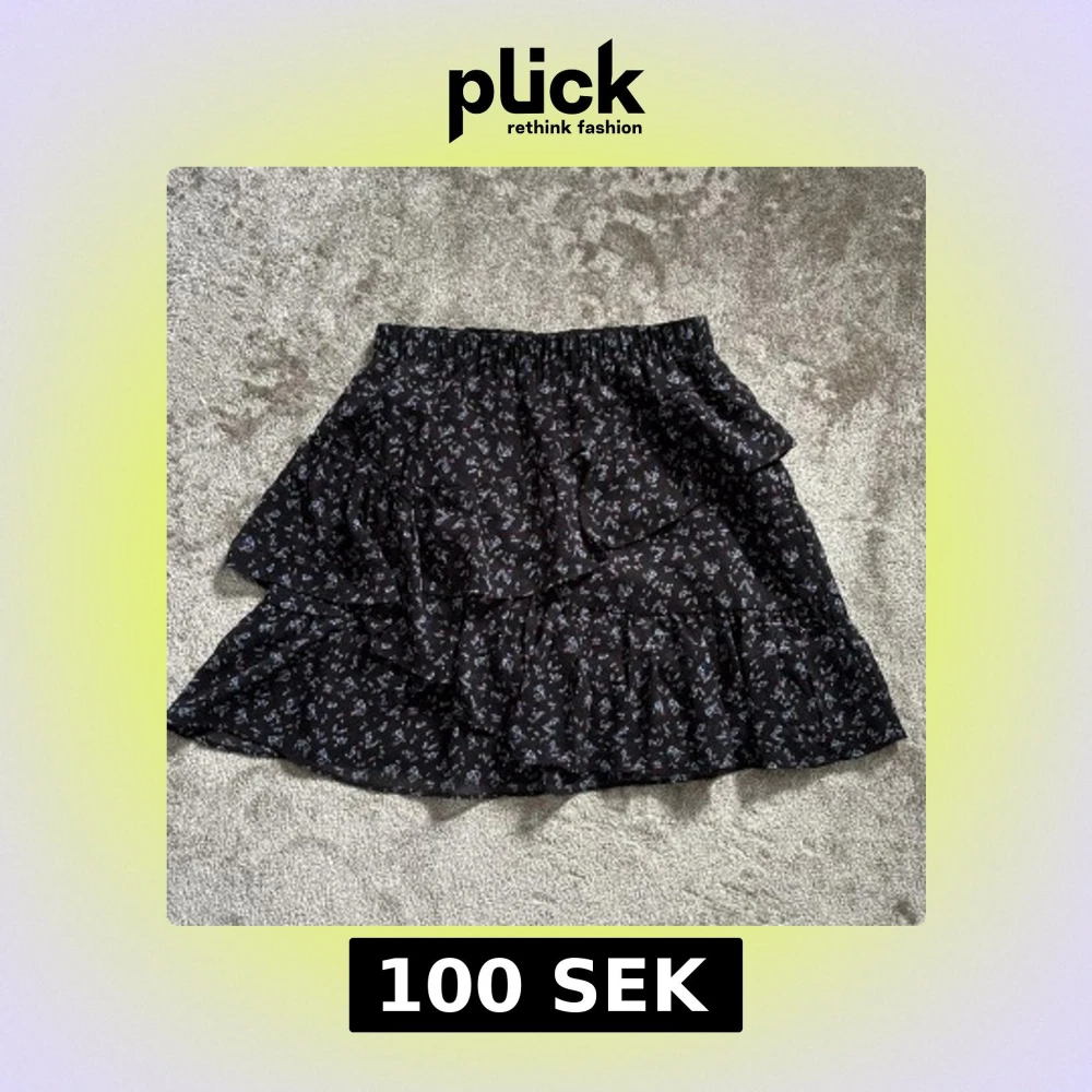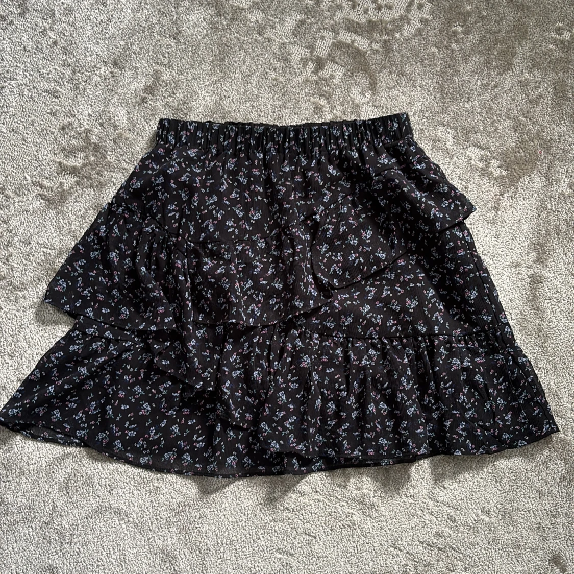 Supersöt svart kortkjol från Stradivarius med små blommor i blått, rosa och vitt! Pris kan diskuteras🩷