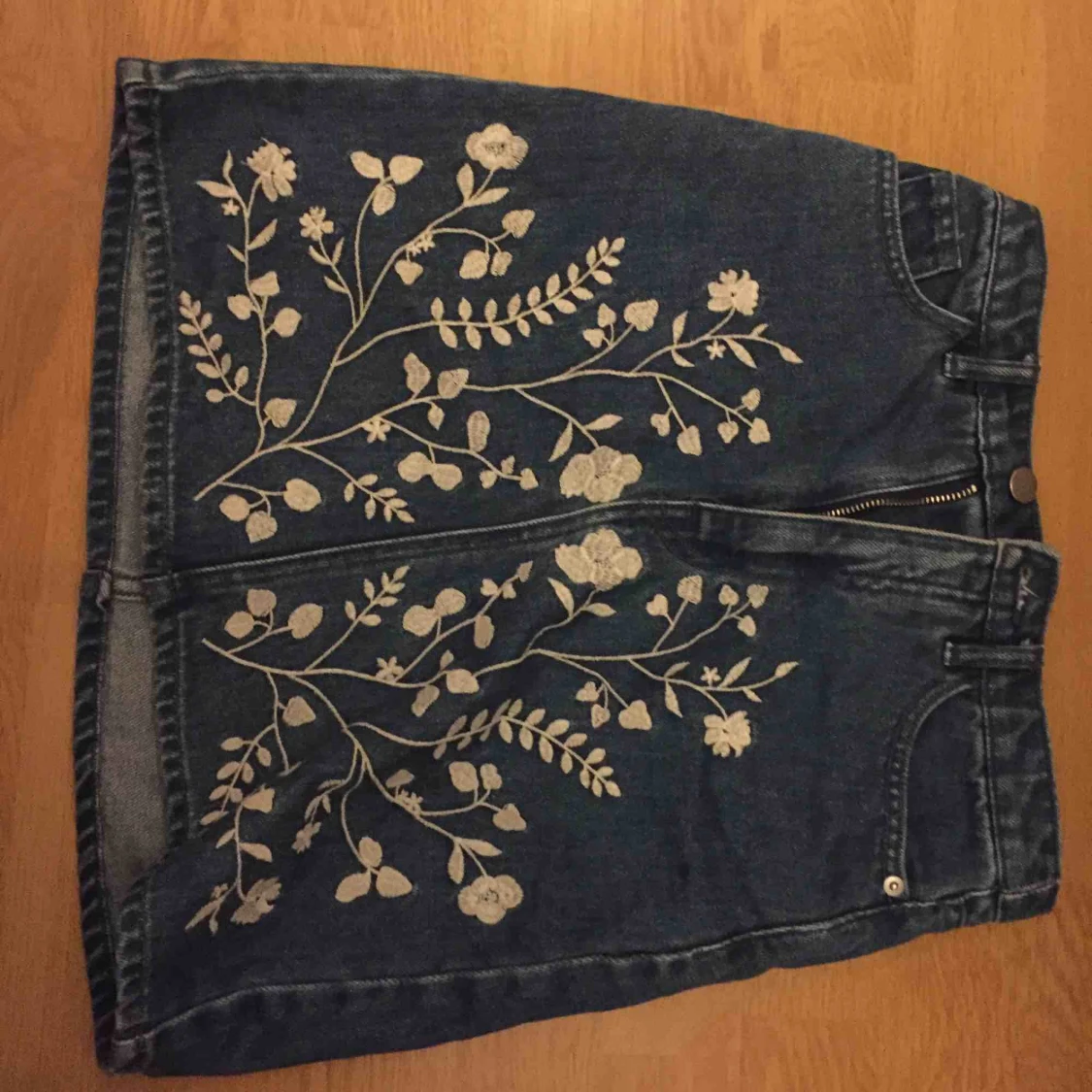 Somrig jeanskjol med broderade blommor på! Använd ungefär 5 gånger max.