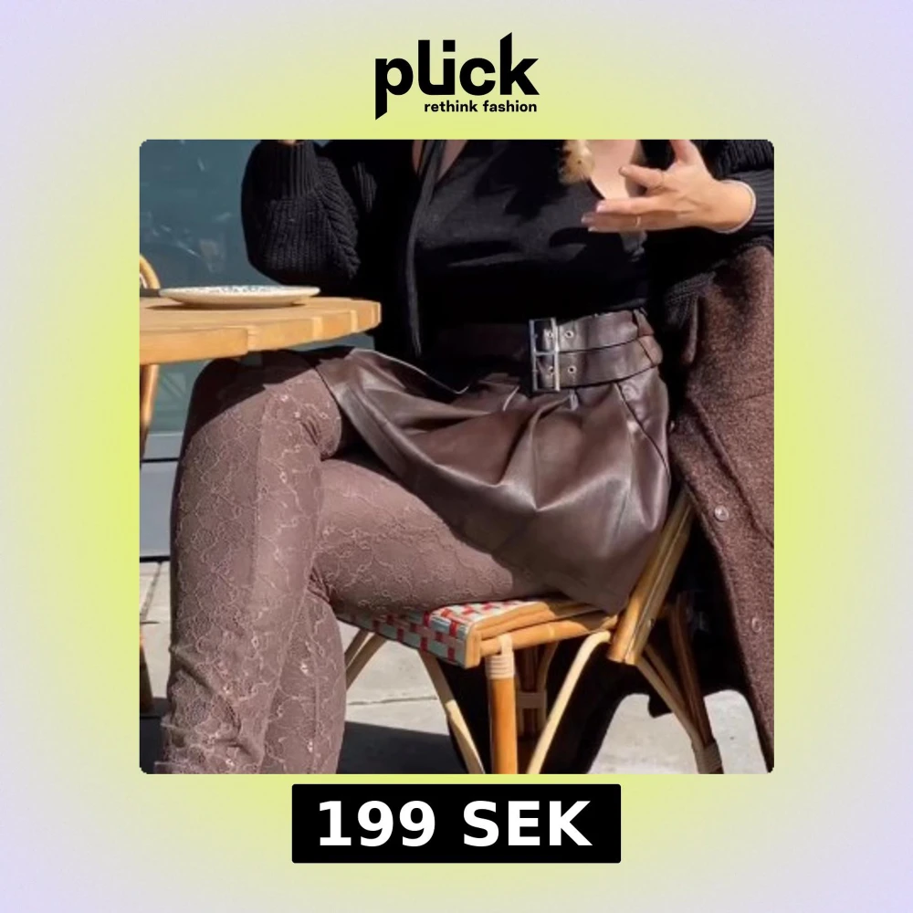 Snygg brun kjol från NA-KD i skinnimitation med dubbla bältesdetaljer i midjan. Kjolen har en kort och utsvängd design som ger en cool look. Perfekt för att ge din outfit en edgy touch! Blivit skrynklig pga legat i garderoben men fixas lätt med en liten steam!