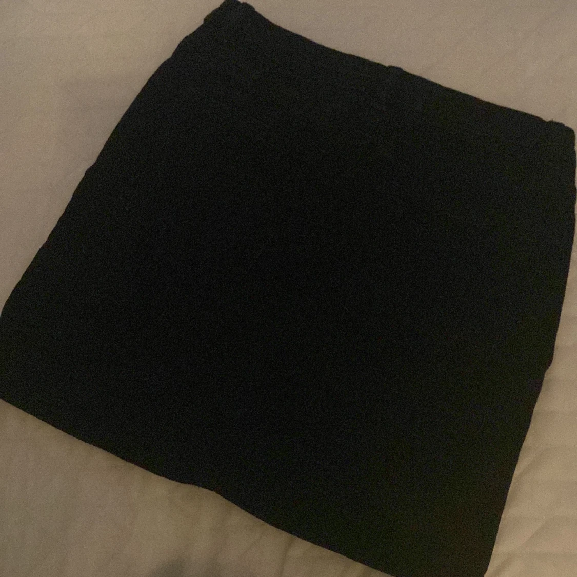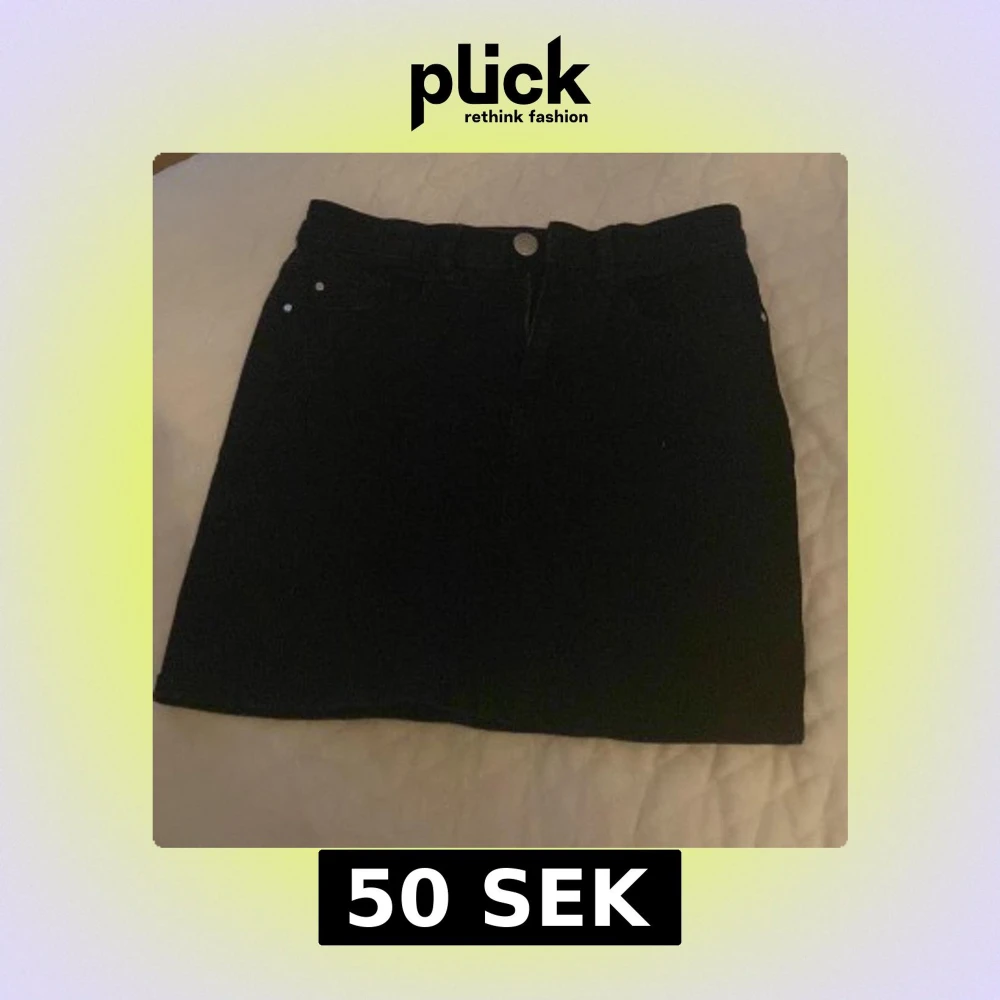 Svart kort jeanskjol med klassisk femficksmodell och knapp framtill. Snygg och enkel design som passar till det mesta. Rak passform och midjehög. Perfekt för dig som gillar en stilren och tidlös vibe.