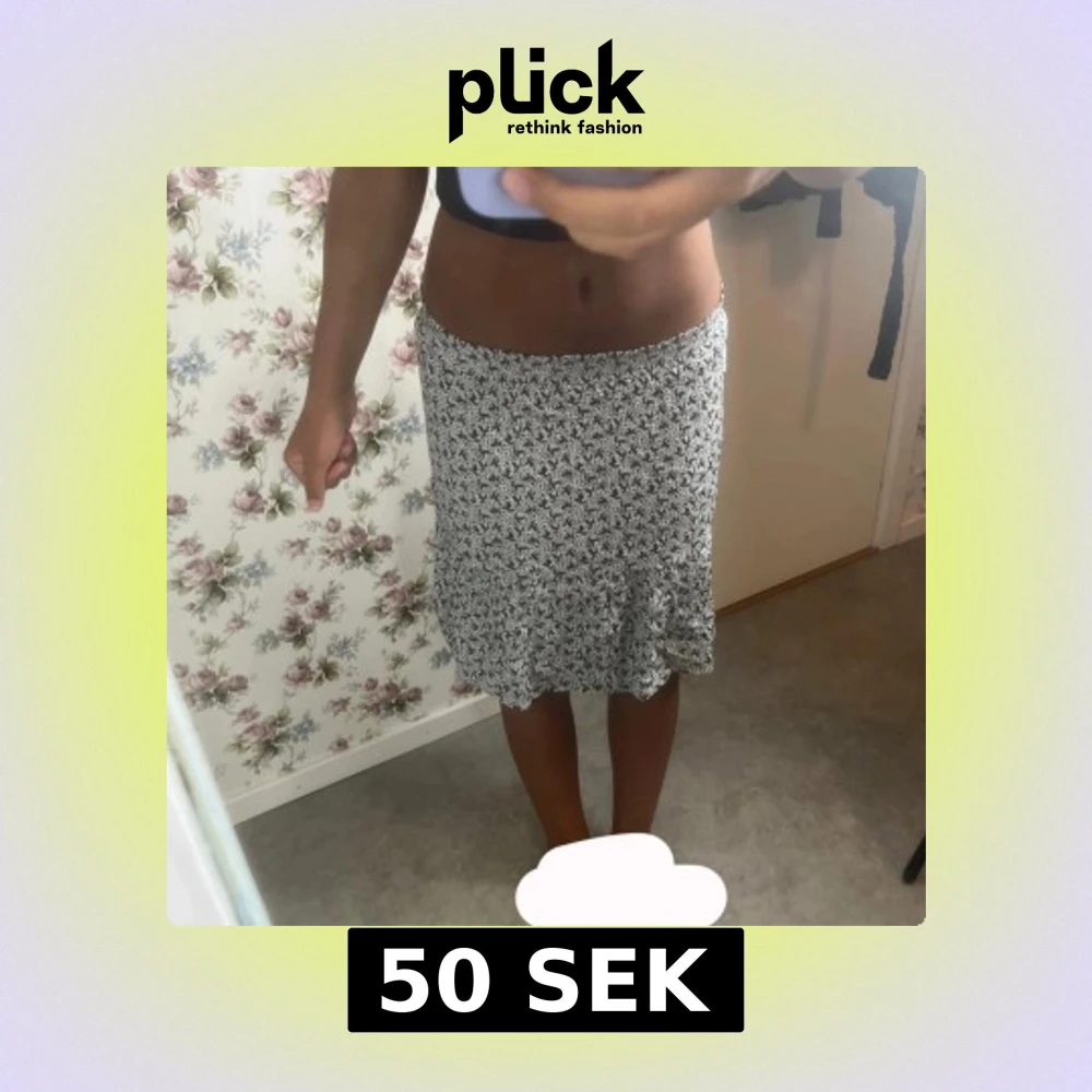 Supersöt svartvit blommig kjol med volangkant nertill. Kjolen har en lätt utsvängd form och sitter skönt i midjan. Perfekt för dig som gillar en feminin och trendig stil.