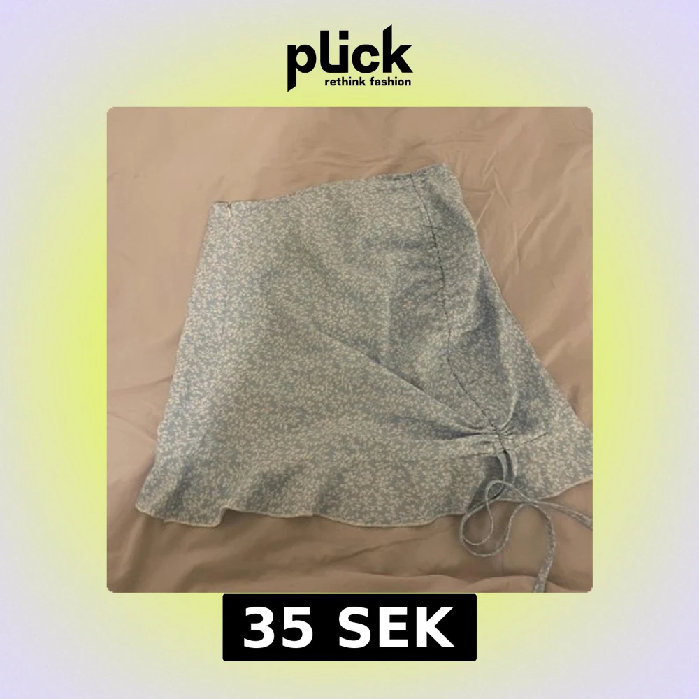 Söt ljusblå omlottkjol från SHEIN med ett fint blommönster. Kjolen har en knytning i sidan och är perfekt för varma dagar.
