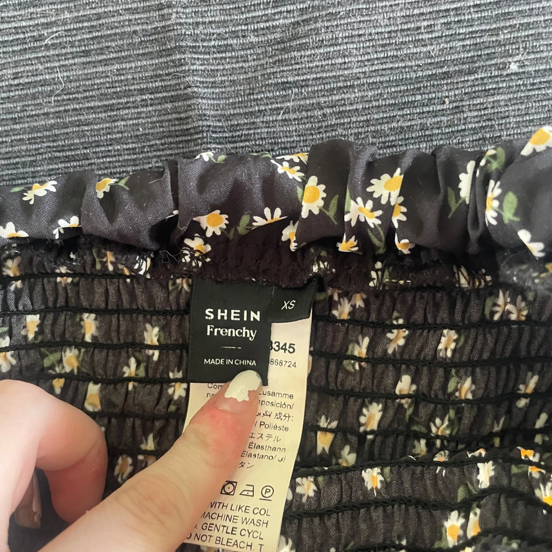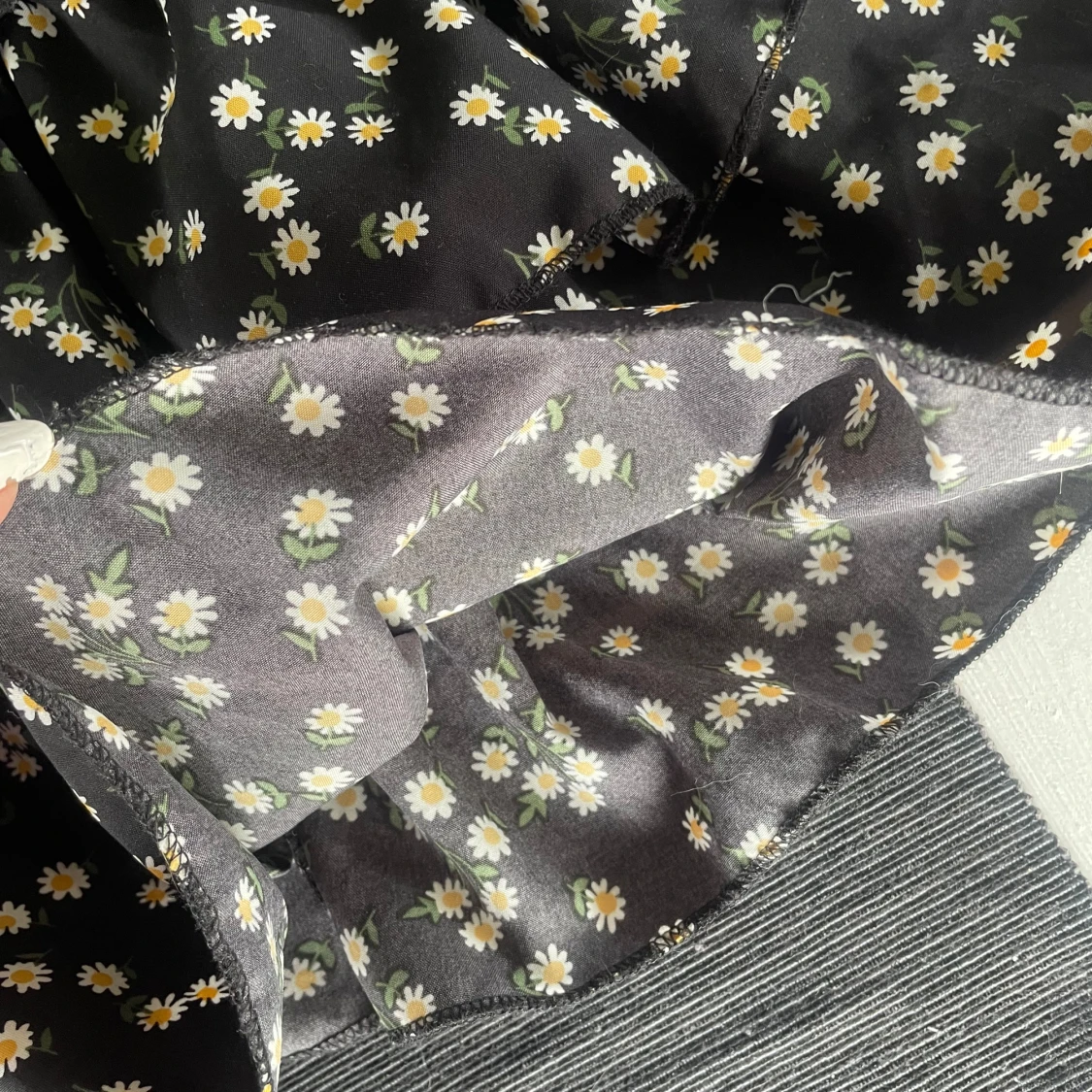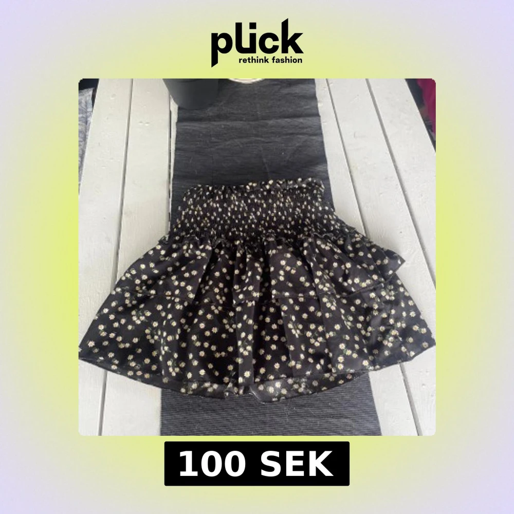 Supersöt svart kortkjol från SHEIN med vita och gula prästkragar. Kjolen har smock i midjan och volangig nederdel som ger en luftig känsla. Perfekt för dig som gillar blommiga mönster och vill ha något bekvämt och trendigt.