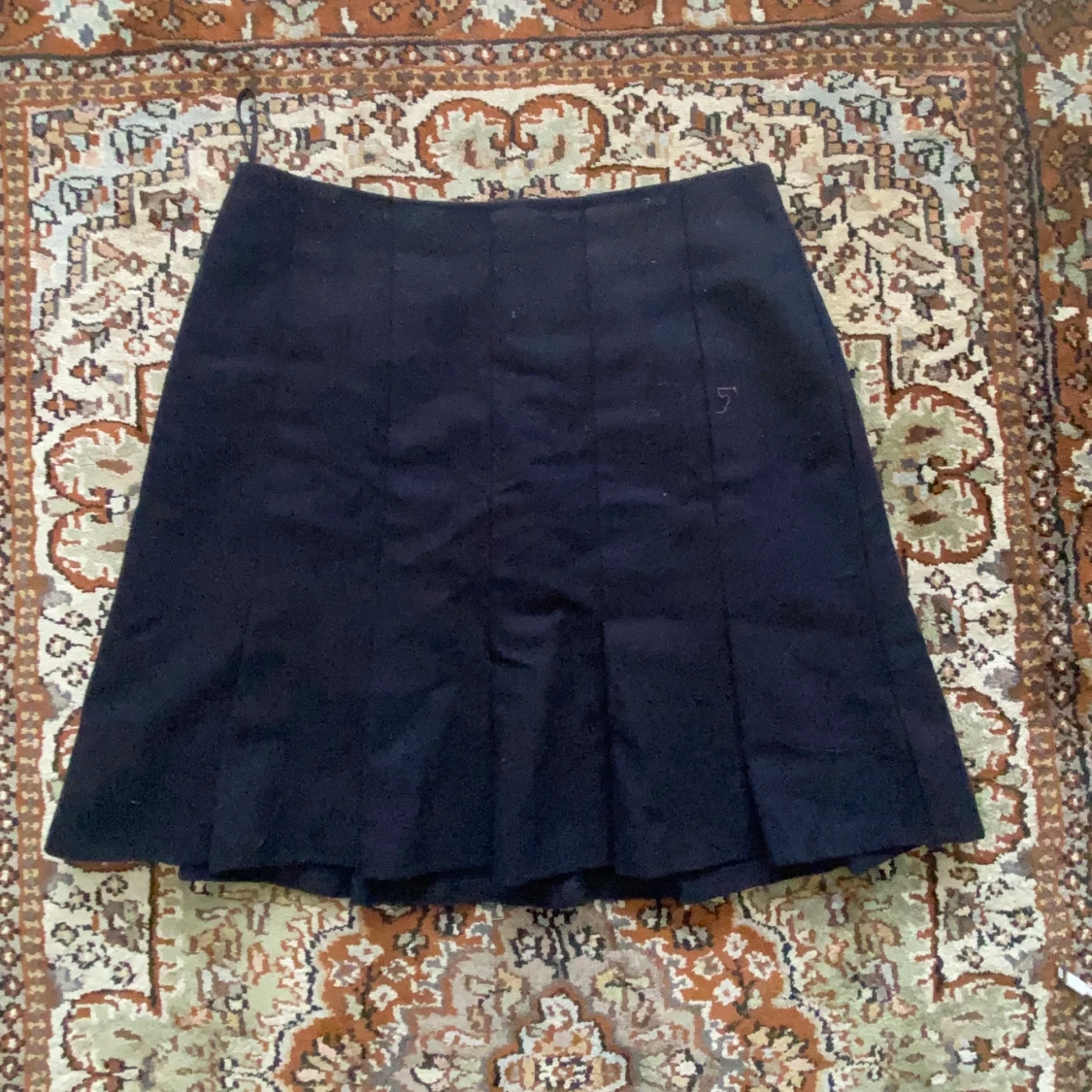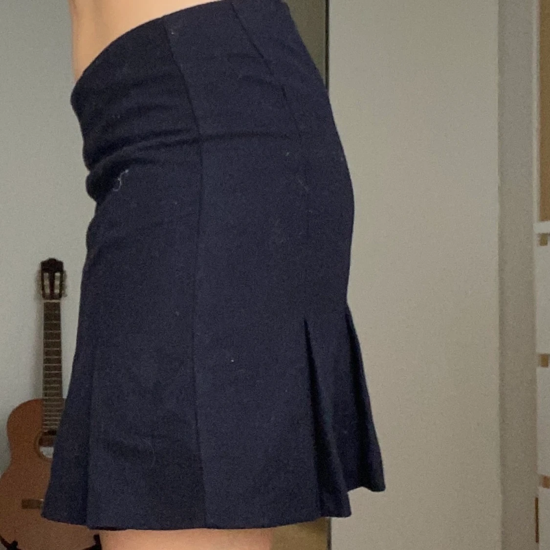 Så fin marinblå veckad kjol i tjockare varmt material! Skulle säga att det är storlek xs-s beroende på hur man vill att den sitter. 50kr exklusive frakt (50kr) eller högsta bud🌟