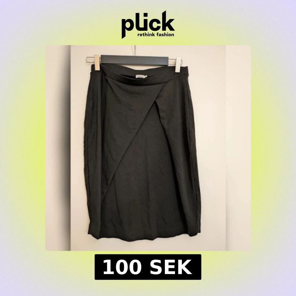 Stilren svart kjol från Filippa K, modellen front plead skirt. Kjolen är tillverkad i ett härligt mjukt, svalt tyg som ger ett snyggt fall (80% acetat, 20% polyamid). En tidlös stil.