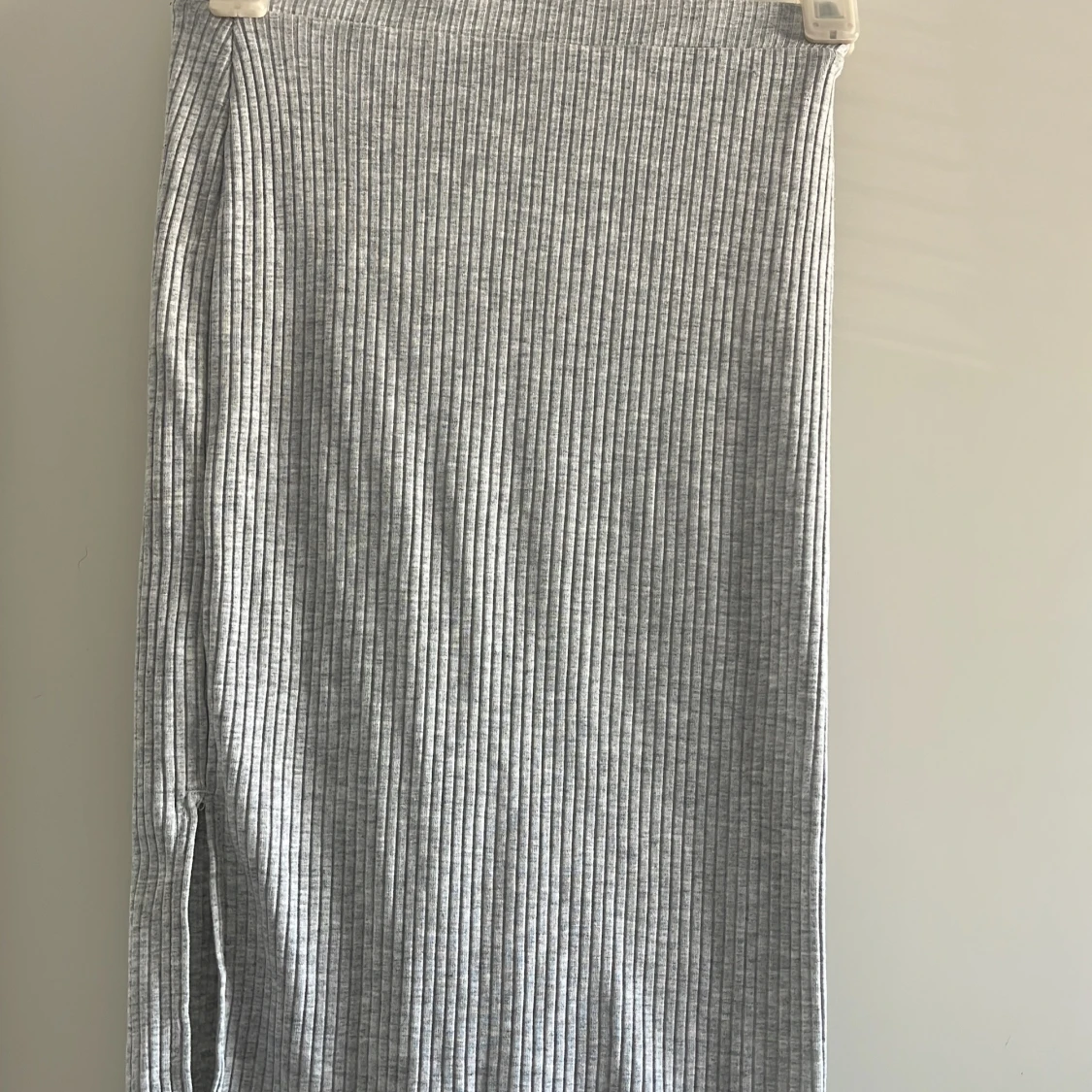 Säljer en grå ribbad långkjol med smal passform. Kjolen har ett diskret vertikalt ribbmönster och är tillverkad i ett mjukt och stretchigt material som känns bekvämt mot huden. Perfekt att styla med en enkel topp eller hoodie.