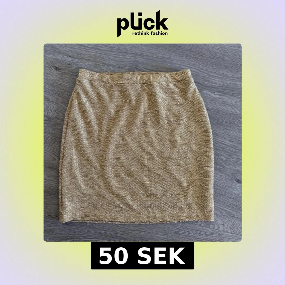 Supersnygg guldig kjol från H&M med glittrigt tyg och rak passform. Perfekt för dig som vill sticka ut lite extra. Kjolen är kort och har en elastisk midja för skön passform.
