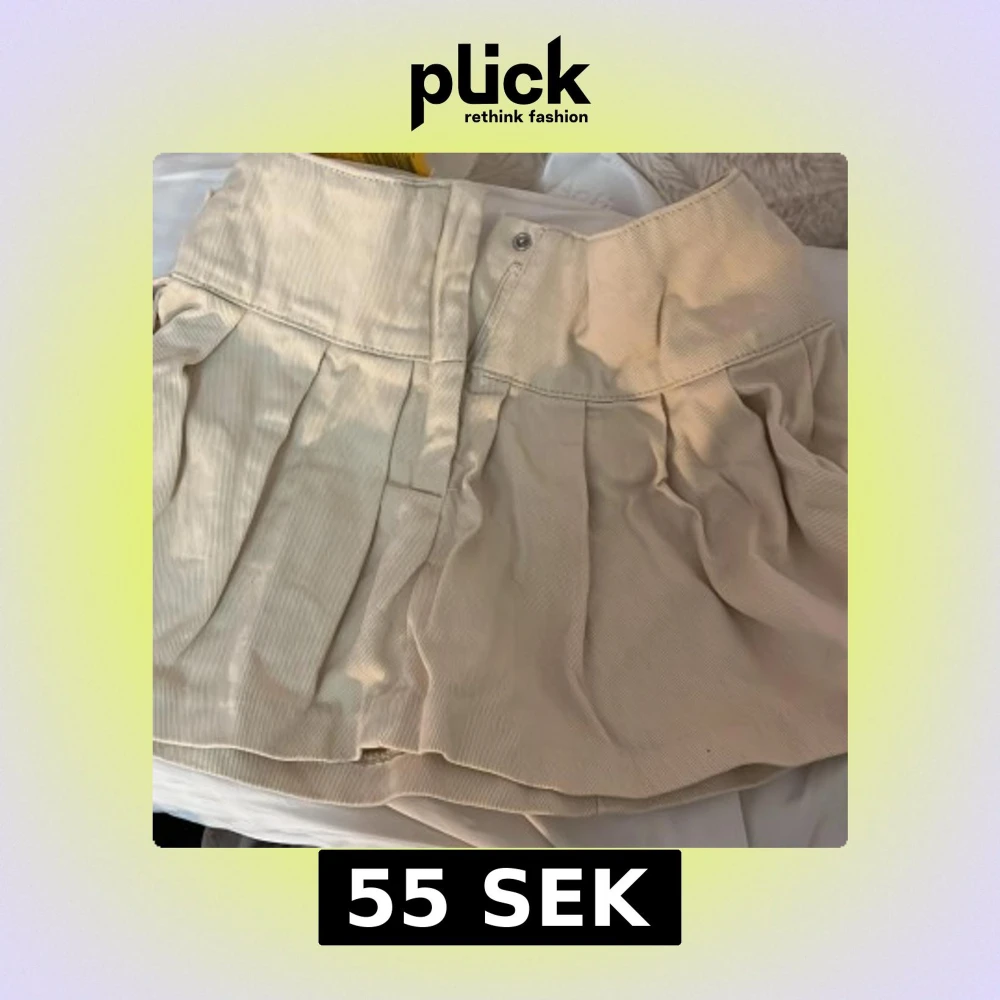 Säljer en beige kjol med en unik stjärndetalj på baksidan. Kjolen har en dragkedja och knapp framtill för enkel påklädning. Den är kort och har en veckad design som ger en fin volym.