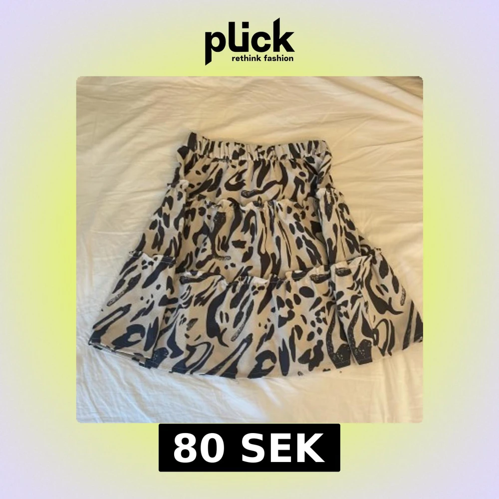 Säljer en beige kjol med svart zebramönster från H&M. Kjolen har volanger och resår i midjan för en bekväm passform. Perfekt för dig som vill sticka ut med ett djurmönster i garderoben.