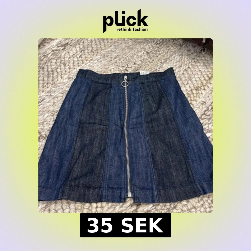 Mörkblå jeanskjol från H&M i kort modell med markerade sömmar och en snygg silverfärgad dragkedja framtill.
