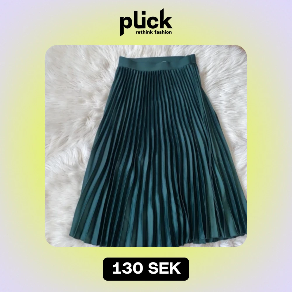 Fin grön veckan kjol som går ner lite längre än vaderna på mig som är ca 165cm Material: 100% polyester Har små slitage