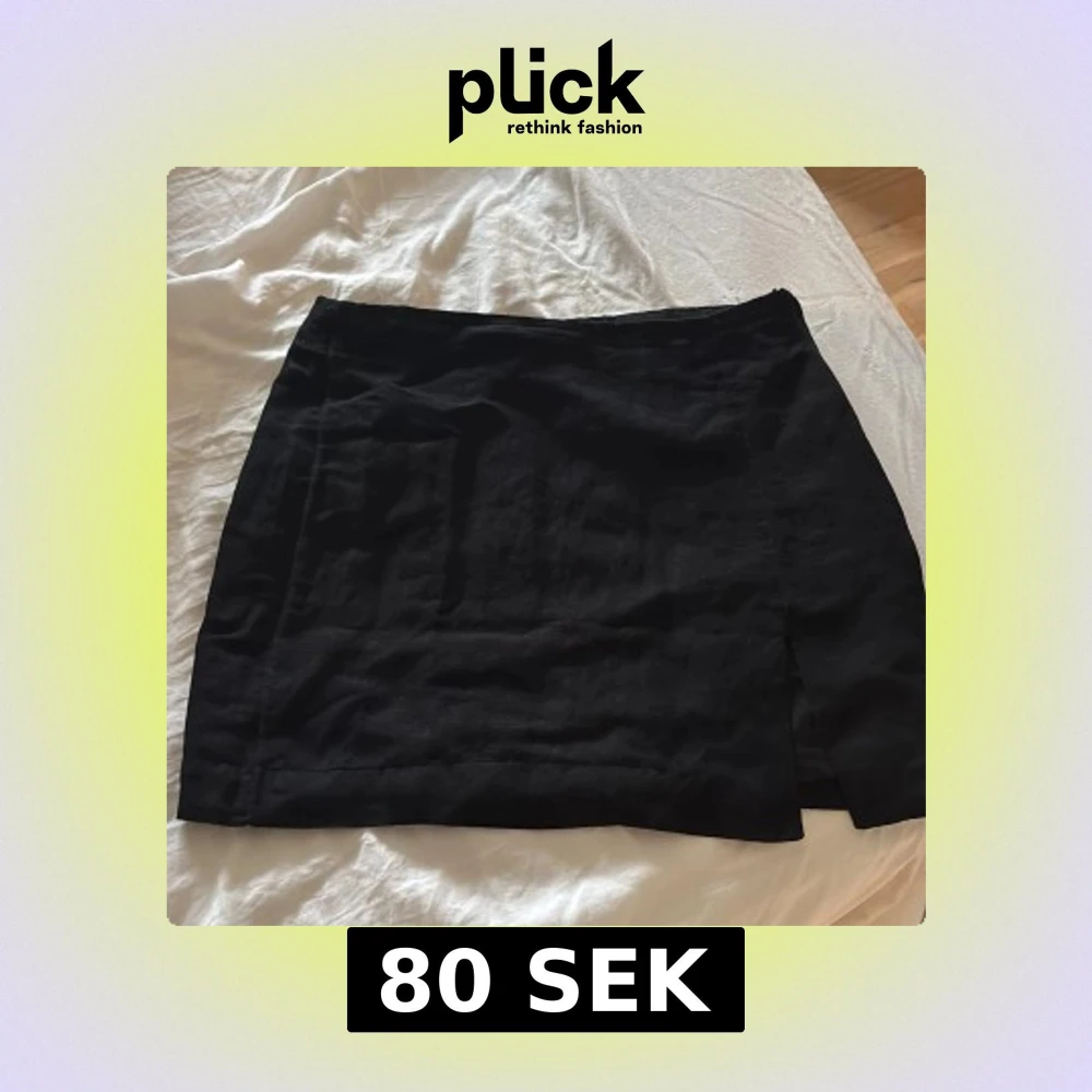 Svart minikjol med slits på framsidan, strl 36. Dragkedja på sidan.