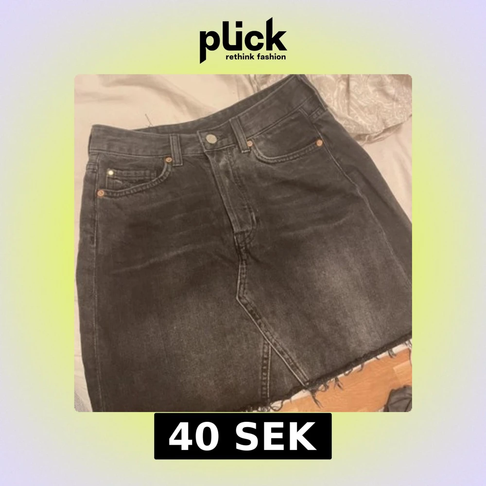 Snygg svart jeanskjol med klassisk femficksdesign och knappstängning. Kjolen har en rå kant nertill som ger en trendig look. Perfekt för en avslappnad stil.