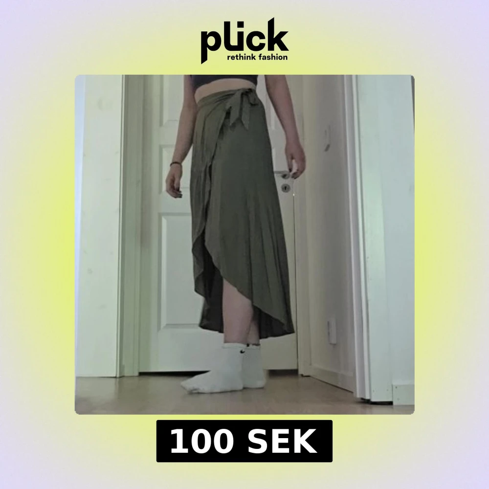En jättefin grön omlottkjol med rosett. Perfekt till sommaren!