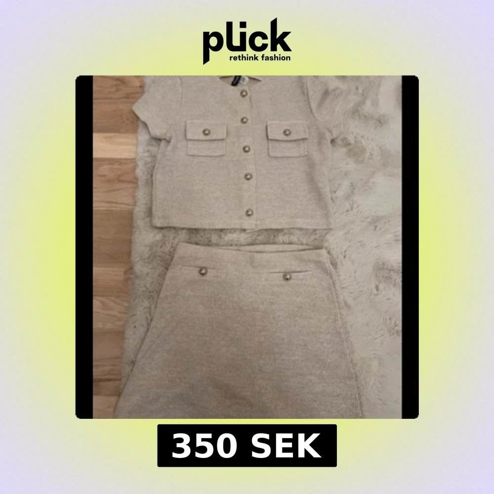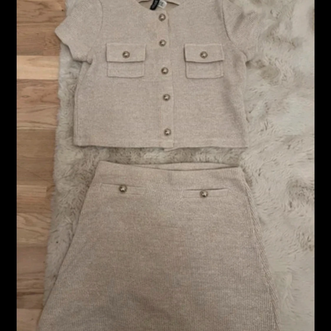 Beige stickad kjol och topp med knappar från H&M