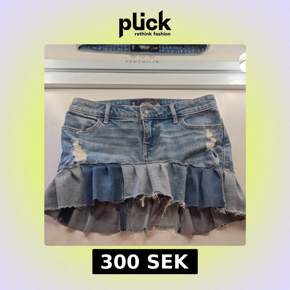 Pris kan diskuteras🥰. Säljer en jättefin jeanskjol från Hollister med slitna detaljer och volangkant i olika nyanser av blått. Kjolen har klassiska fickor fram och bak, råa kanter och en kort passform. Perfekt för dig som gillar en edgy och trendig stil.
