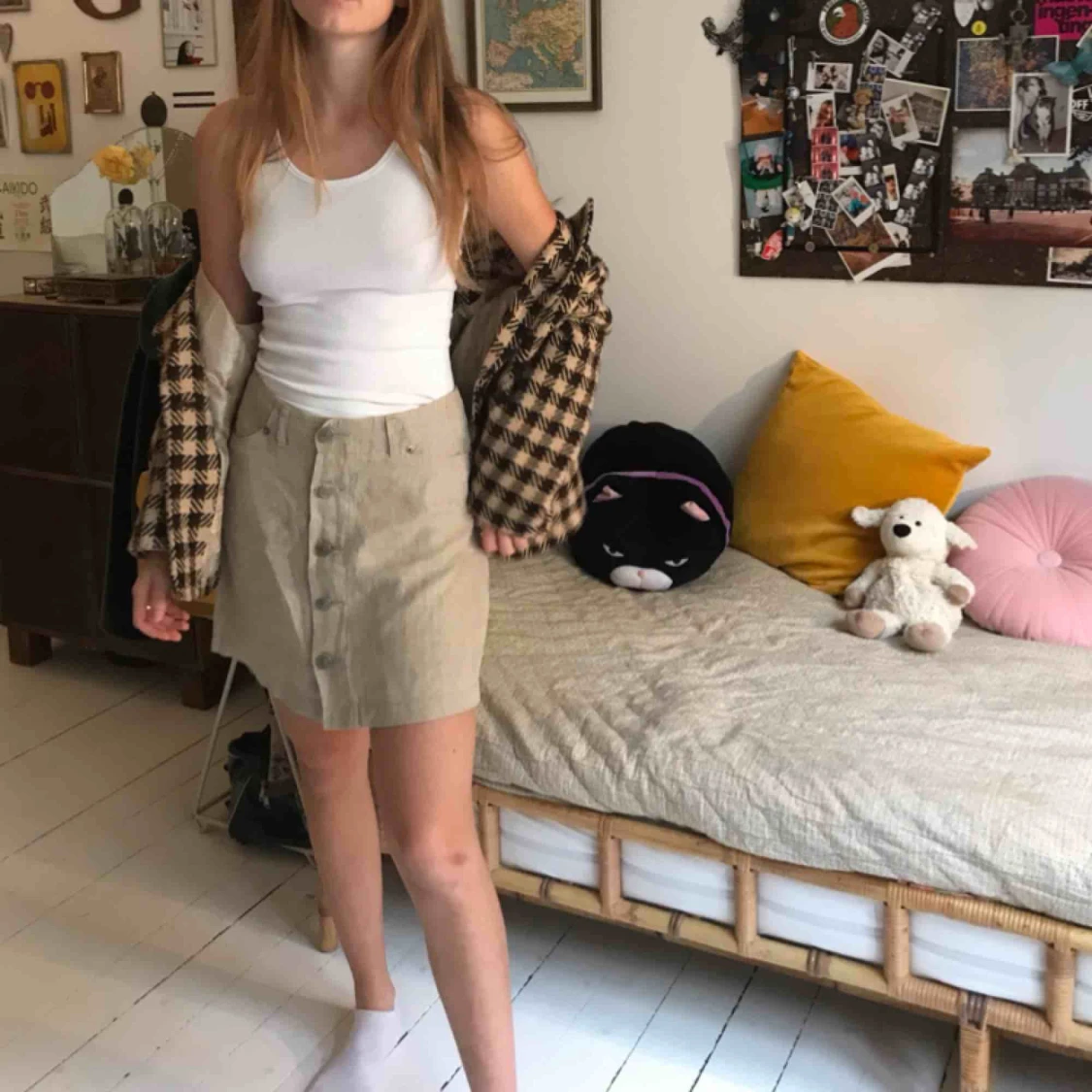 En 90-tals kjol från jackpot! Passar bra med en kavaj. Är i bra skick men knapparna är lite lösa. Kan mötas upp i Malmö centrum annars står köparen för frakt. Hör av er om ni har frågor<3