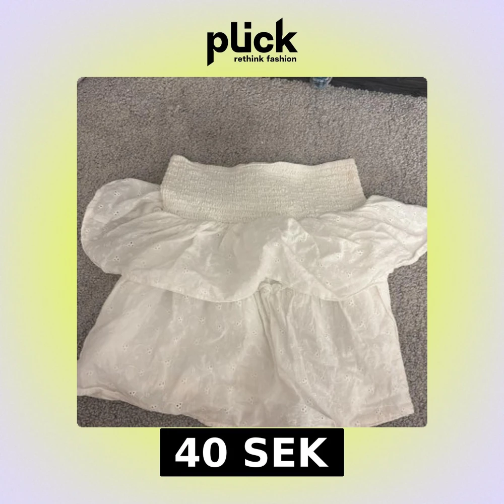 Supersöt vit kjol från KappAhl med bred smock i midjan och dubbla volanger. Kjolen har broderade små hålmönster och är gjord i mjuk bomull. Perfekt för dig som gillar romantisk och feminin stil.