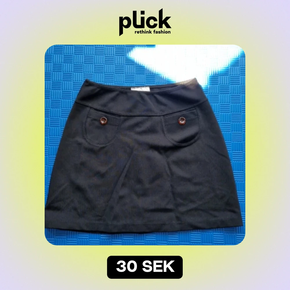En svart kjol från Kappahl med två dekorativa knappar framtill. Kjolen är tillverkad av 96% Meryl och 4% Elastan, vilket gör den stretchig när den är våt.