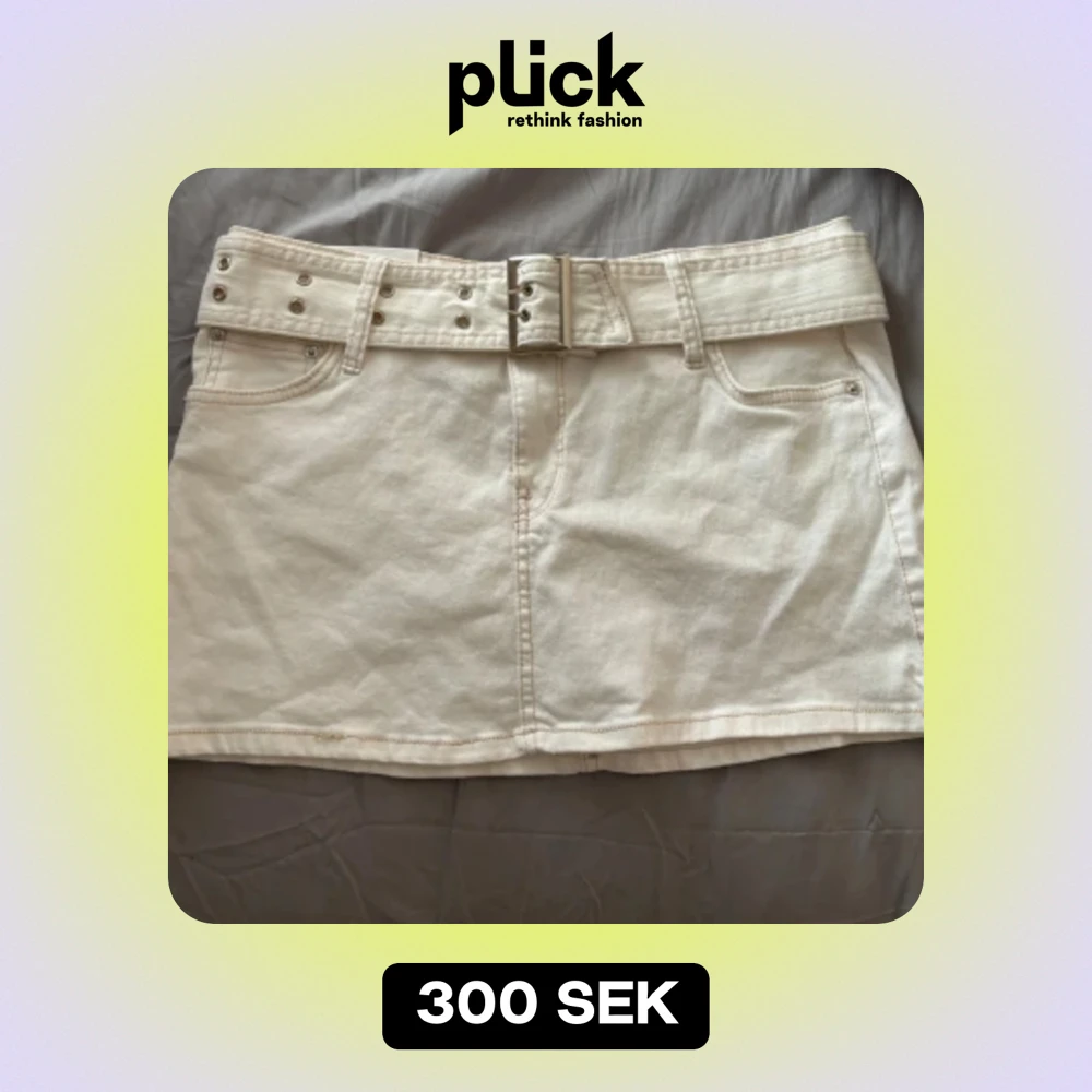 Jätte fin kjol från bershka. Aldrig använd och lappen finns kvar! Jag skulle säga att färgen är lite mer off white! Det är en storlek 40 men passar mig som är storlek 38 då den är low waisted!
