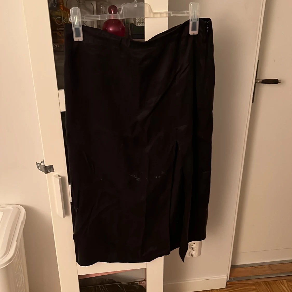 Svart högmidjade kjol i sammet med dragkedja på sidan och slit. Från H&M