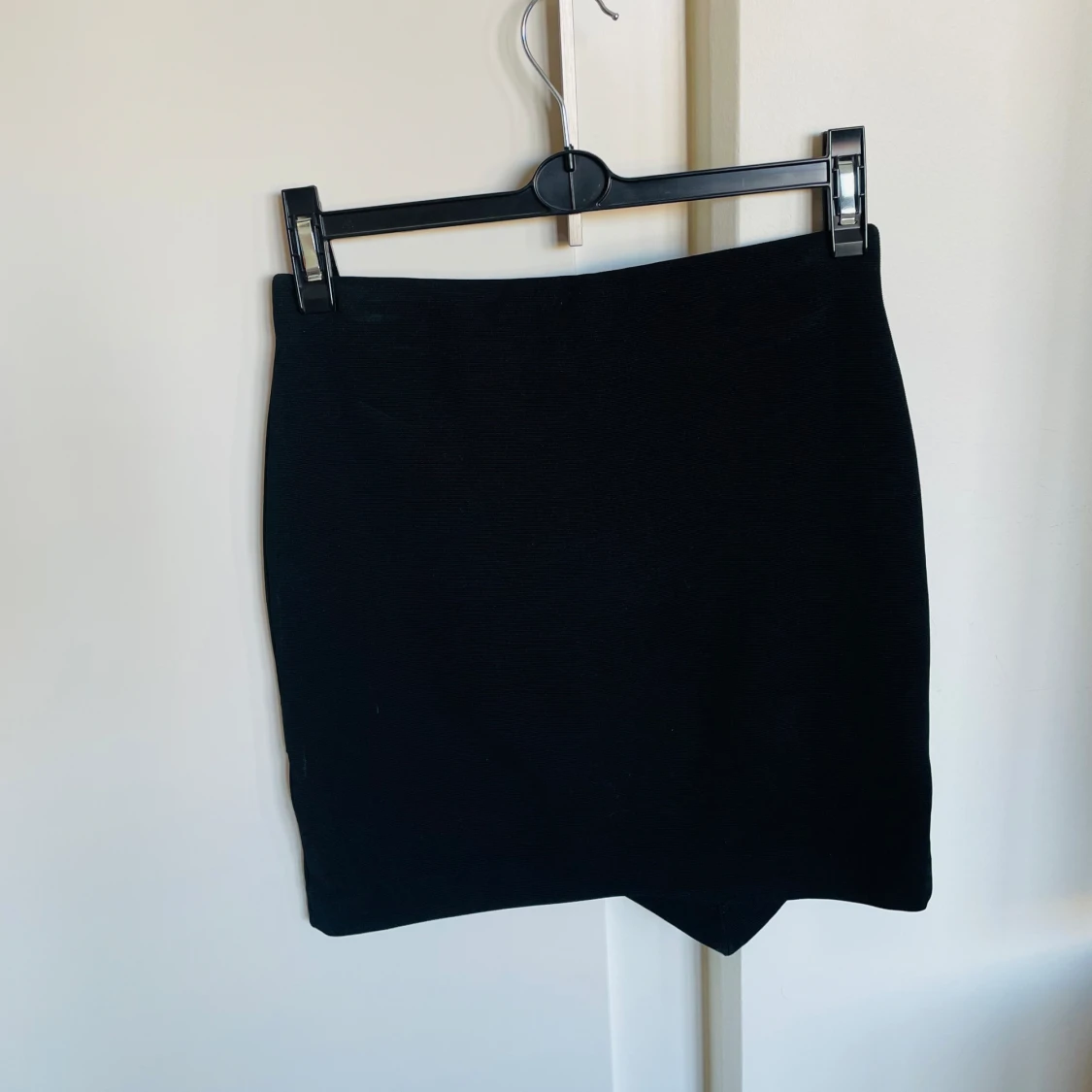 Märke: H&M Vad: Kjol Storlek: Small Upplevd i storlek: Normal Färg: Svart Material: 96% polyester & 4% elastan Skick: Inget att anmärka på