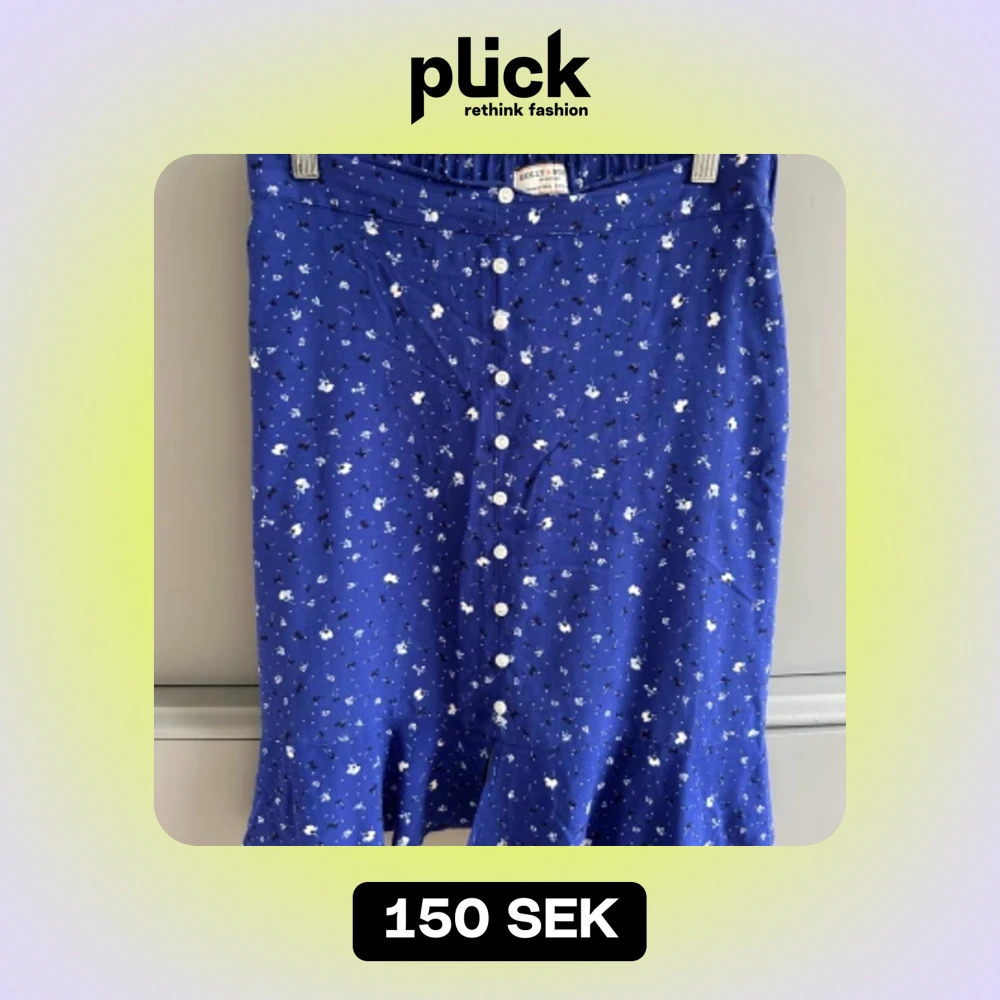 Nyskick, aldrig använd. Blå kjol med vita blommor och små svarta detaljer från Holly&whyte . Kjolen har vita knappar framtill och en slits nere.