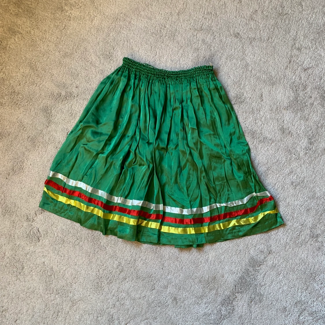 Cool grön kjol! Köpt för några år sedan men bara använd en gång, där av säljer jag den. Osäker på storlek då det inte står något men skulle gissa mellan xs-m då resåren är rätt bra! Kan mötas upp eller skicka