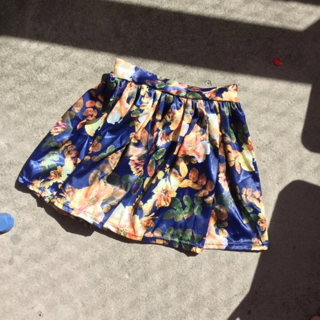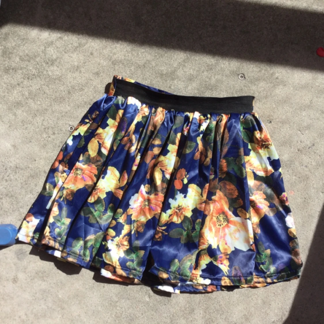 Vippig kjol i satin med massa stretch. Köpt på nån random secondhand. Pga najs stretch bak (de svarta bandet ni ser på bilderna) så kan kjolen säkert passa allt mellan XS till M.