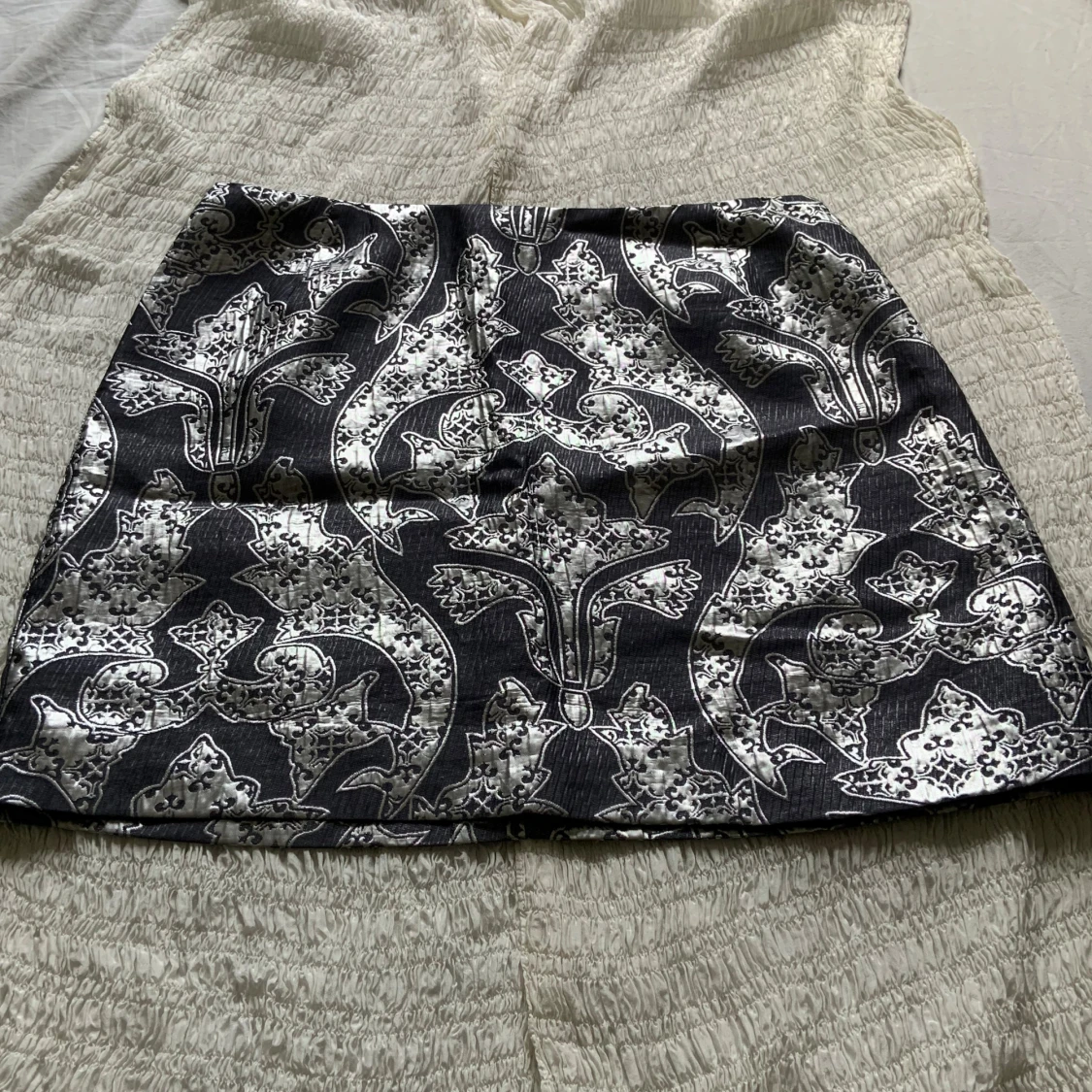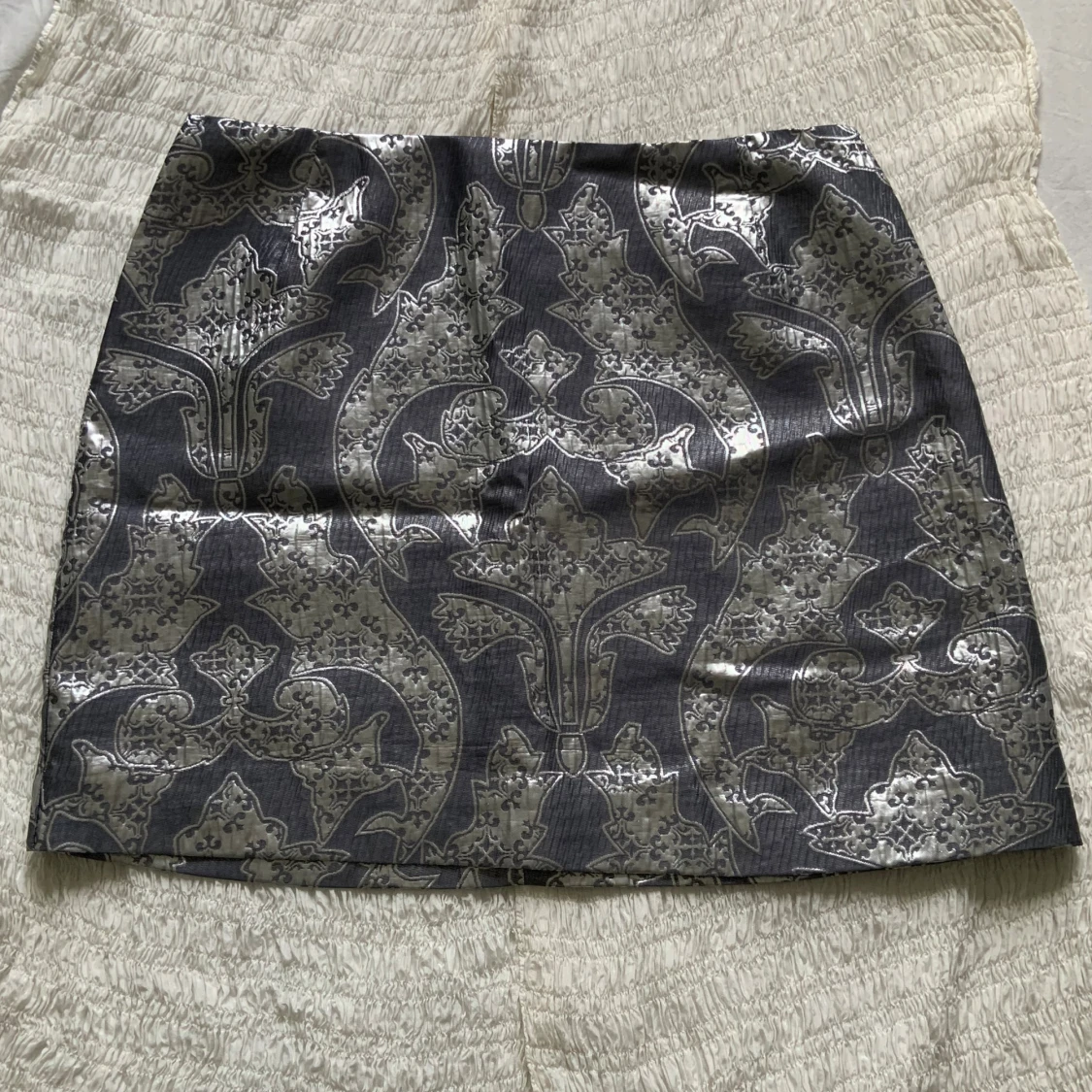 Superunik kortkjol (eller top) i grått och ett silvrigt skimrande mönster som verkligen sticker ut. Jag gillar den verkligen men har aldrig använt den så den är som ny! Har en liknande kjol med guldigt skimmer, kolla gärna in den!💋