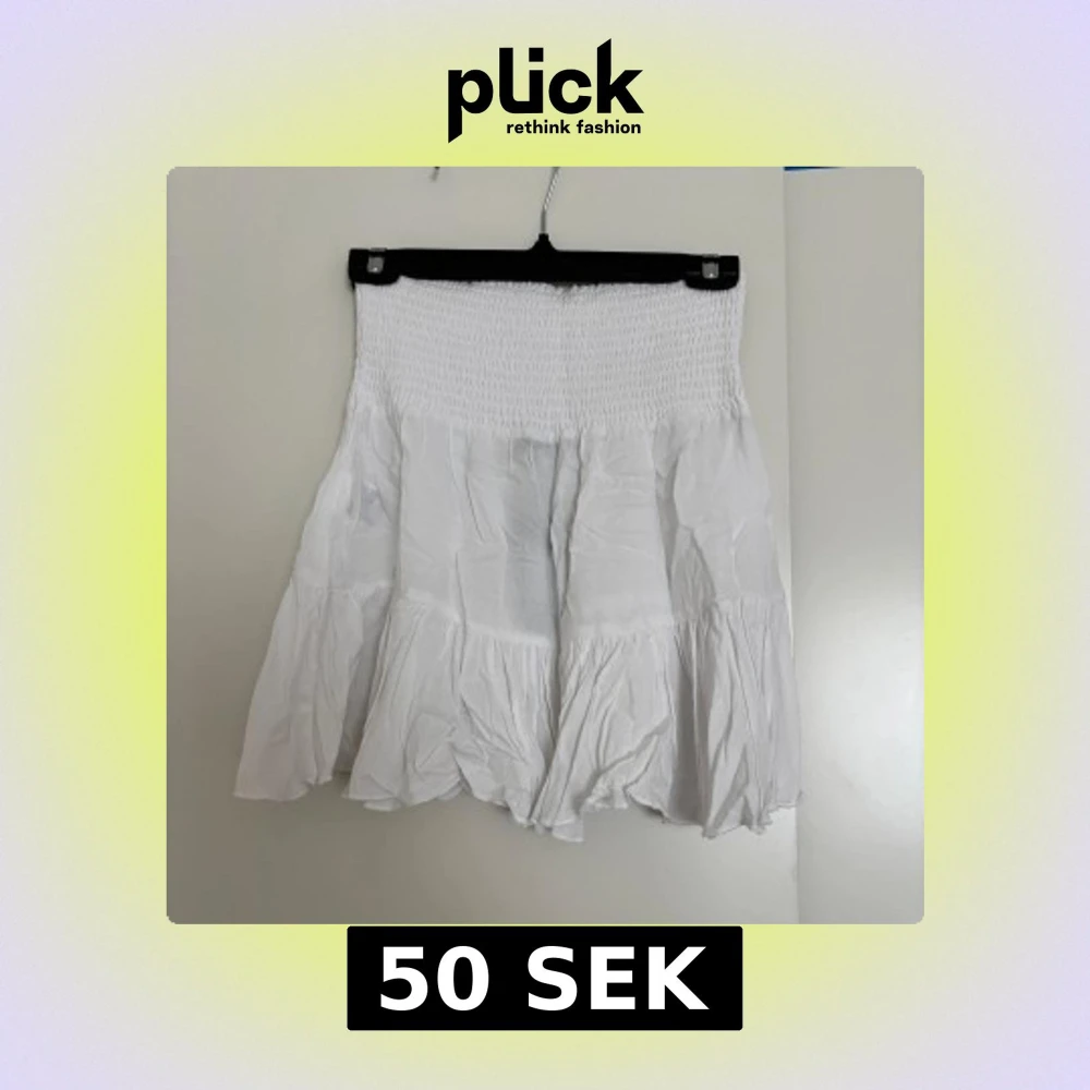 Superfin vit kortkjol från 157 med smock i midjan och volangig nederdel. Kjolen är luftig och har en flowy känsla, perfekt för varma dagar. Tillverkad i mjuk bomull som känns skön mot huden. Enkel att matcha med crop tops eller oversized t-shirts.