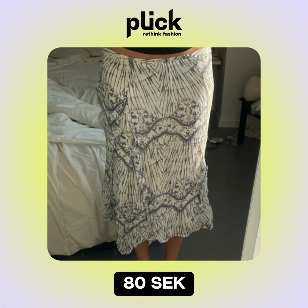 Lågmidjad, medellång och assymetrisk. Alltså kjolen är längre på ena sidan än den andra.