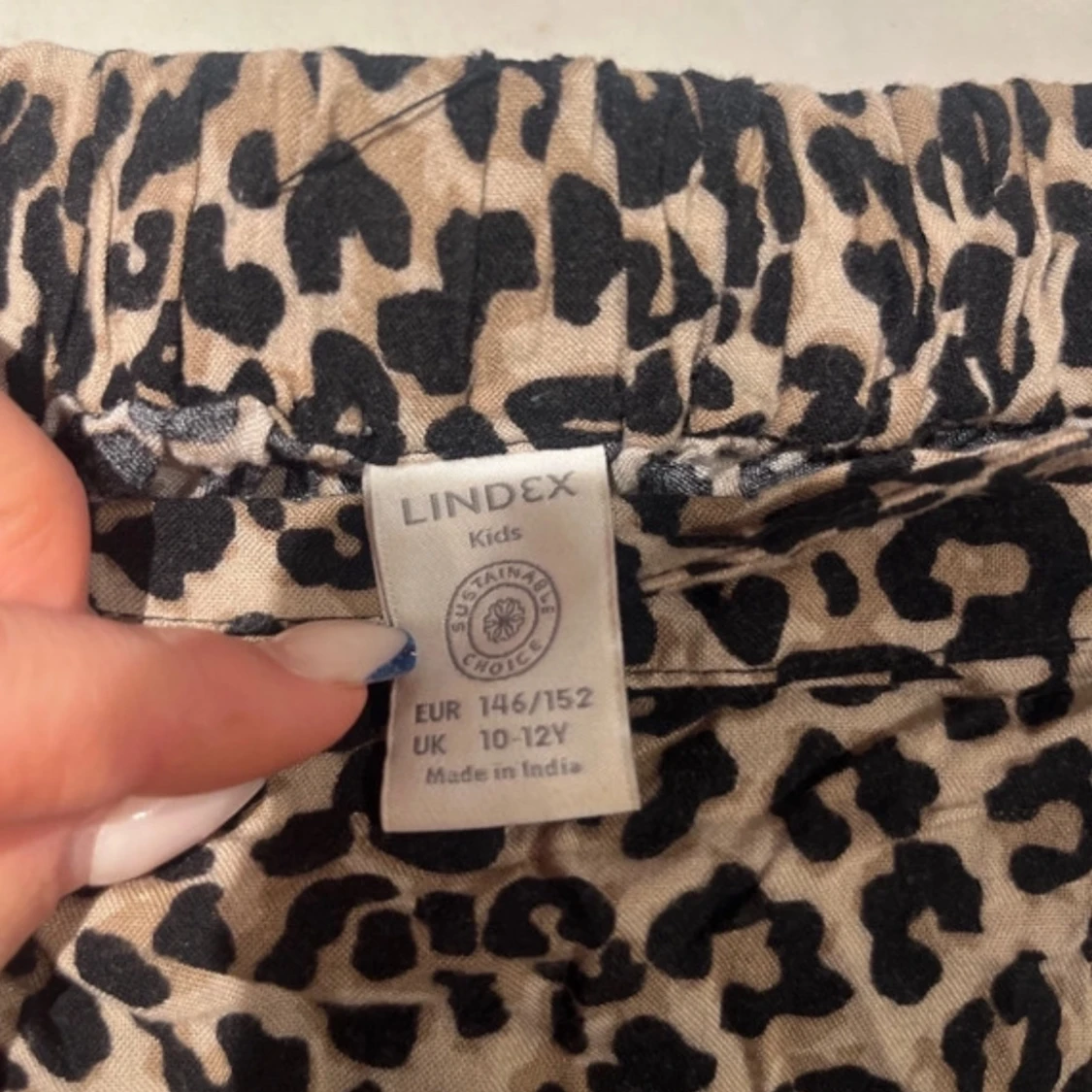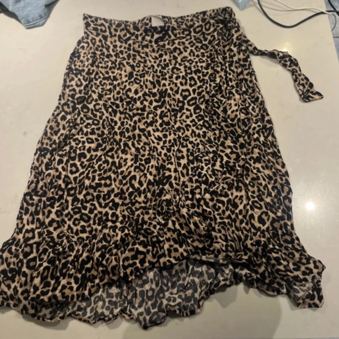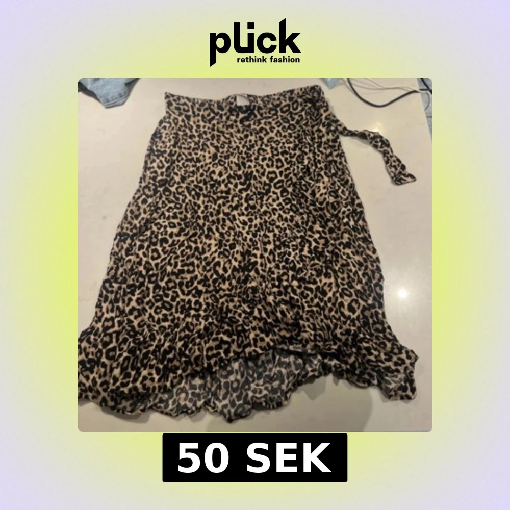 Snygg leopardmönstrad kjol från Lindex i storlek 146/152. Kjolen har ett omlottutseende med volangdetaljer och ett knytband i sidan. Jättestretchig. Passar s/m