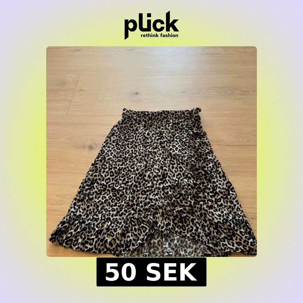 Snygg leopardmönstrad omlottkjol från Lindex med volangkant och knyt i midjan. Kjolen har beige botten med svarta och bruna fläckar, vilket ger en trendig look. Perfekt för dig som vill sticka ut lite extra.