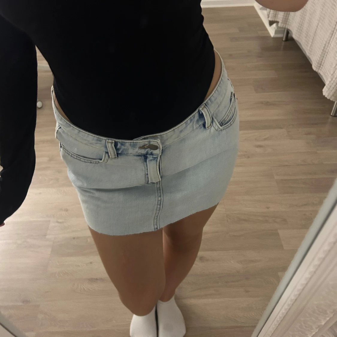Svart tight kortkjol i bomull - Enkel och stilren svart tight kjol i kort modell. Kjolen är rak och figurnära, sydd i mjuk bomull ☁️ Perfekt till festen och går att matcha med allt! Materialet är väldigt stretchigt så passar både XS, S och M 🫶🏼
