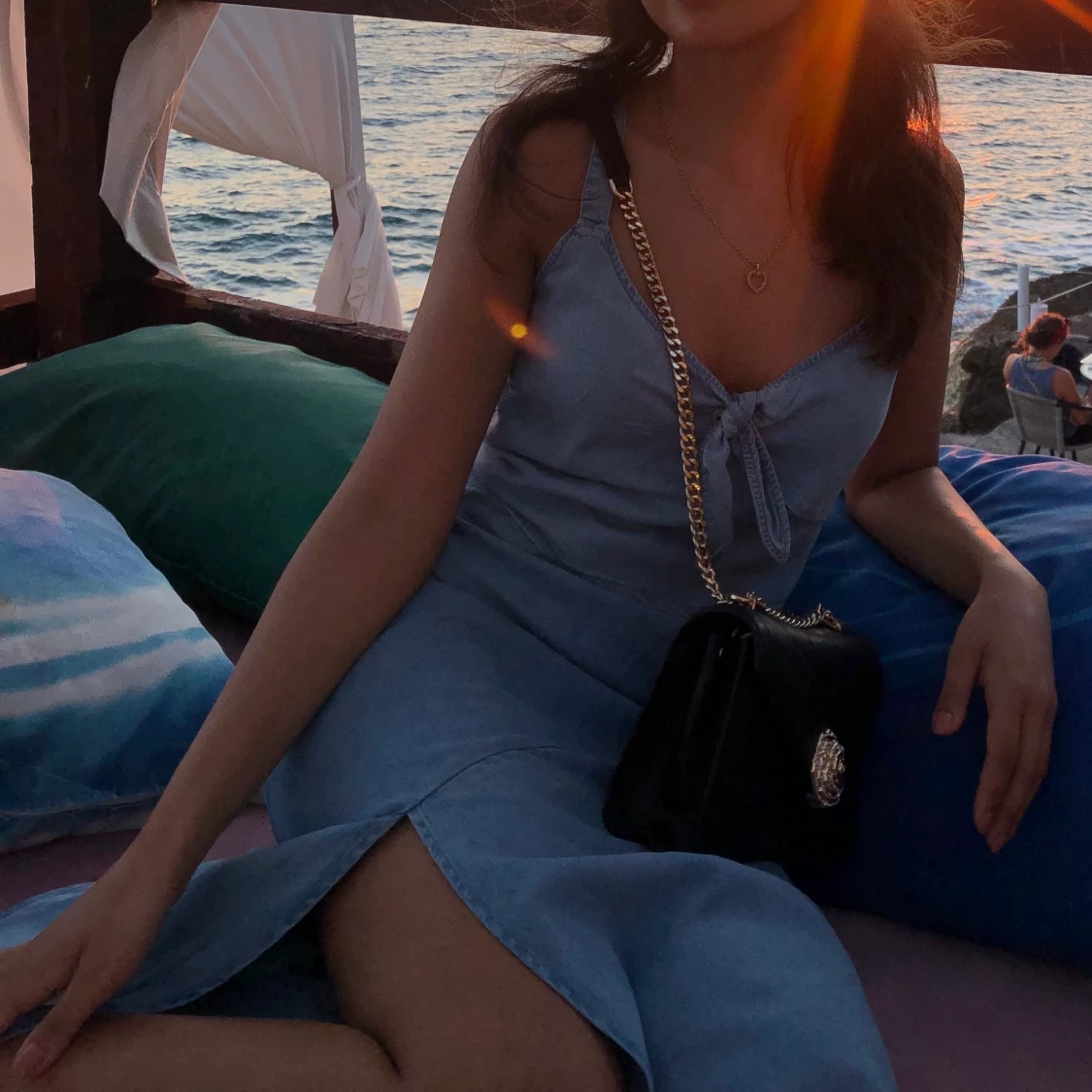 Ett blå set köpt från lindex, i st S. Det är en överdel och kjol. Använd endast en gång. På sista bilden ser man hur färgen ser ut i dagsljus. Toppen ser slapp ut på mig pga att mina bröst är små, sitter mkt finare på någon som har större bröst.