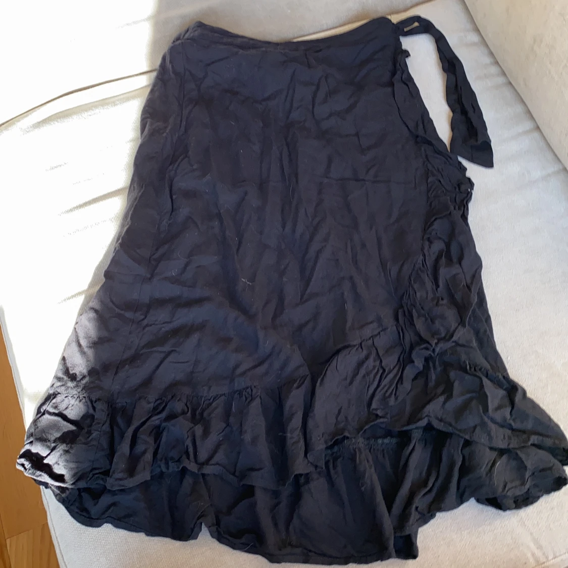 En jättefin svart kjol som man kan knyta upp till midjan. Säljer för att inte har använt den så mycket.
