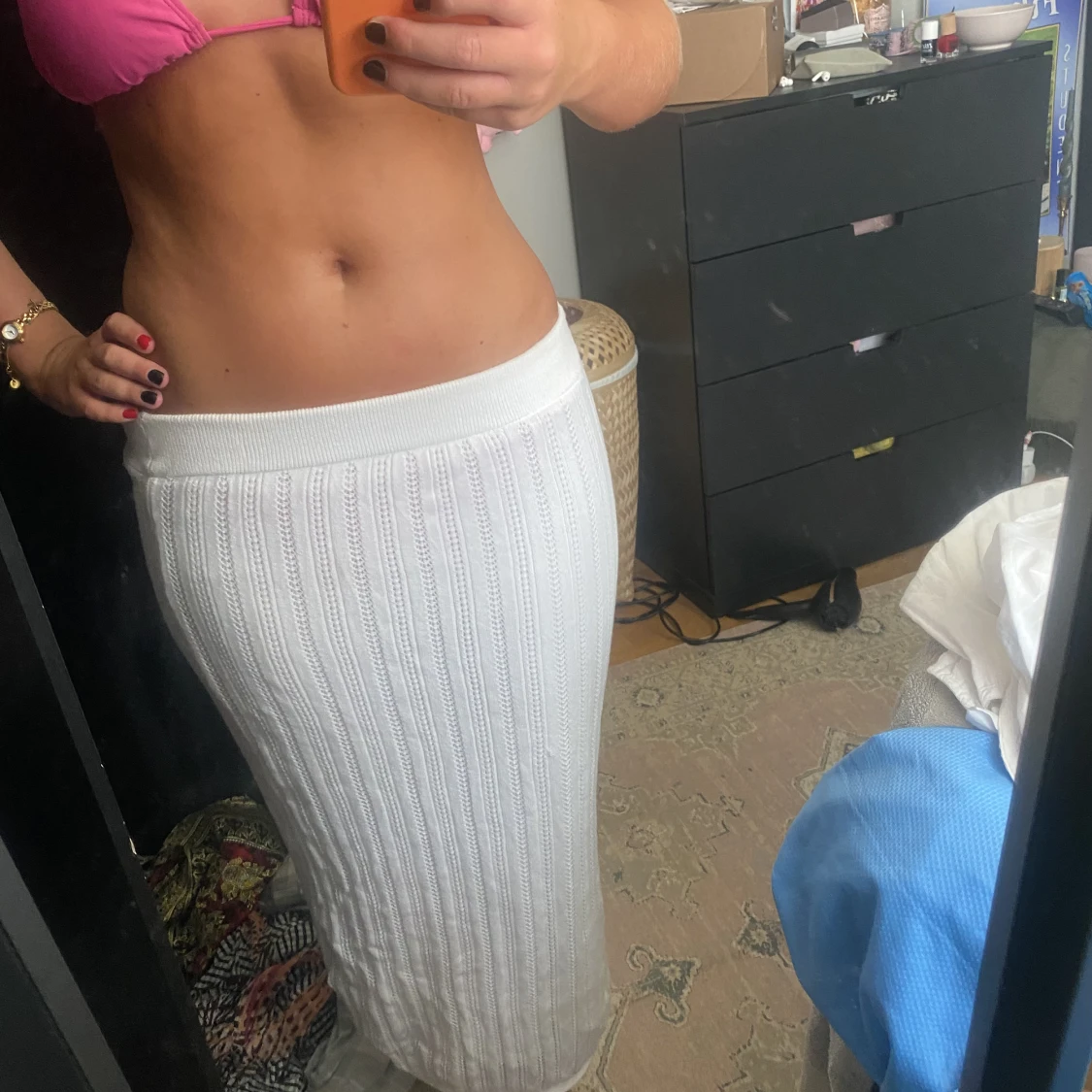 Vit långkjol från lindex! Knappt använd! Storlek S passar mej bra som är 170 lång! Stretchigt material