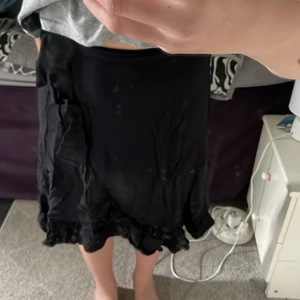 Jag säljer en svart volang kjol som är från Lindex. Den är använd men i bra skick. Den har knytning på sidan.