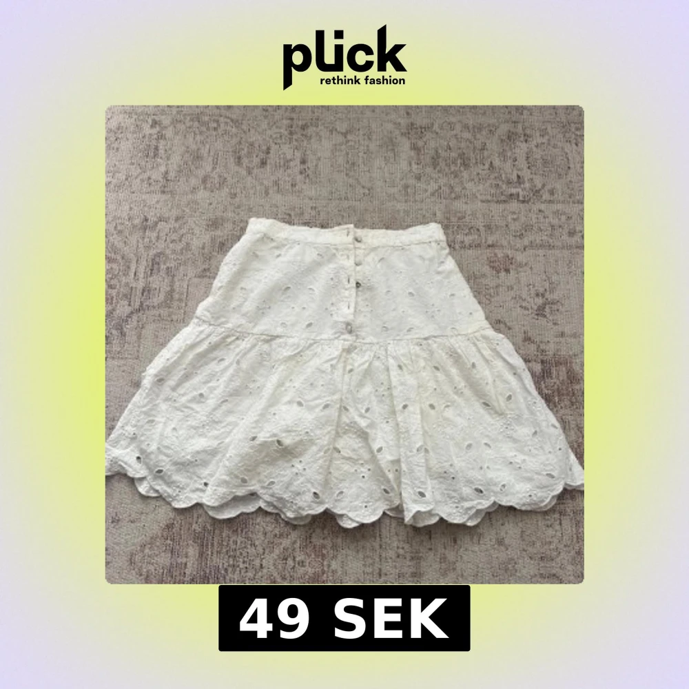 Supersöt vit kortkjol från Holly & Whyte med broderade blommor och spetsdetaljer. Kjolen har knappar framtill, volangkant och är gjord i mjuk bomull. Perfekt för sommarens alla dagar, matcha med en enkel topp eller hoodie för en chill look. En av knapparna är borta och därav det billiga priset, fortfarande en väldigt fin kjol, pris kan diskuteras vid snabb affär💞