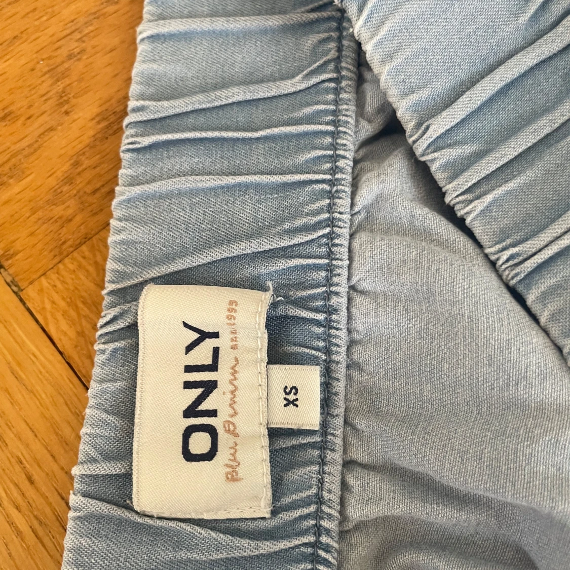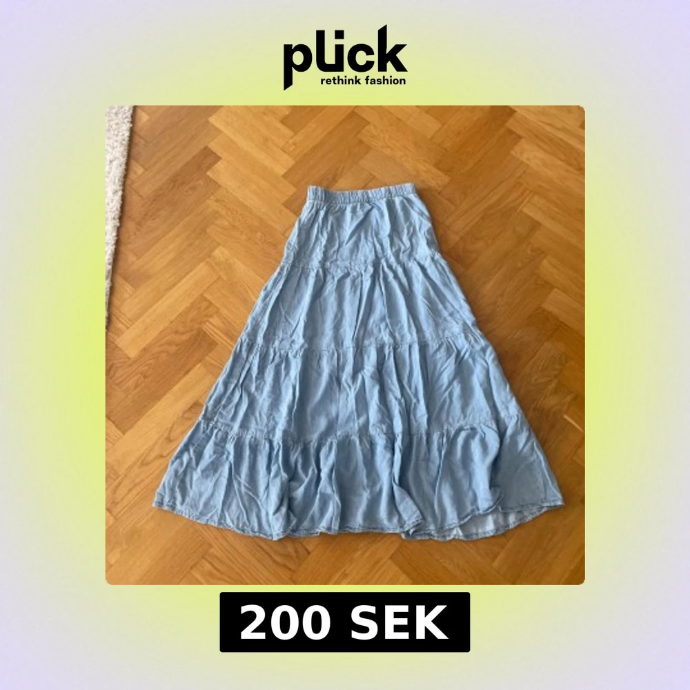 Superfin ljusblå långkjol från ONLY i flowigt material. Kjolen har volangdetaljer och resår i midjan för extra bekvämlighet. Perfekt för dig som gillar en avslappnad och trendig stil. Säljes i storlek XS.